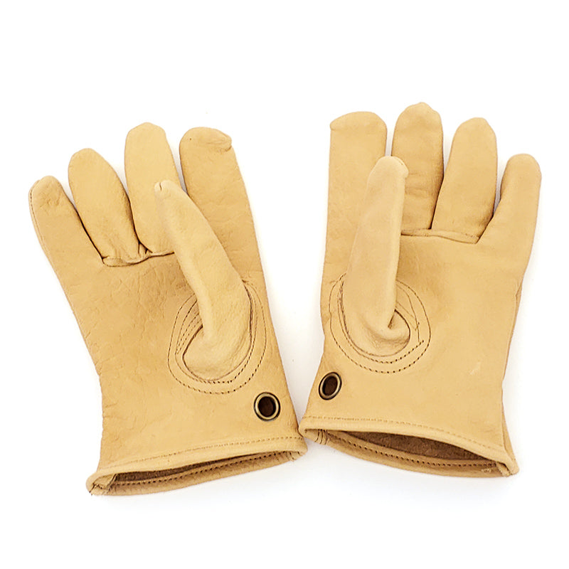 Top grain cowhide leather bushcraft style for whenever your hands need protection from abrasion or heat. Convenient brass grommet so you can clip them to you pack etc. (color and texture may vary).