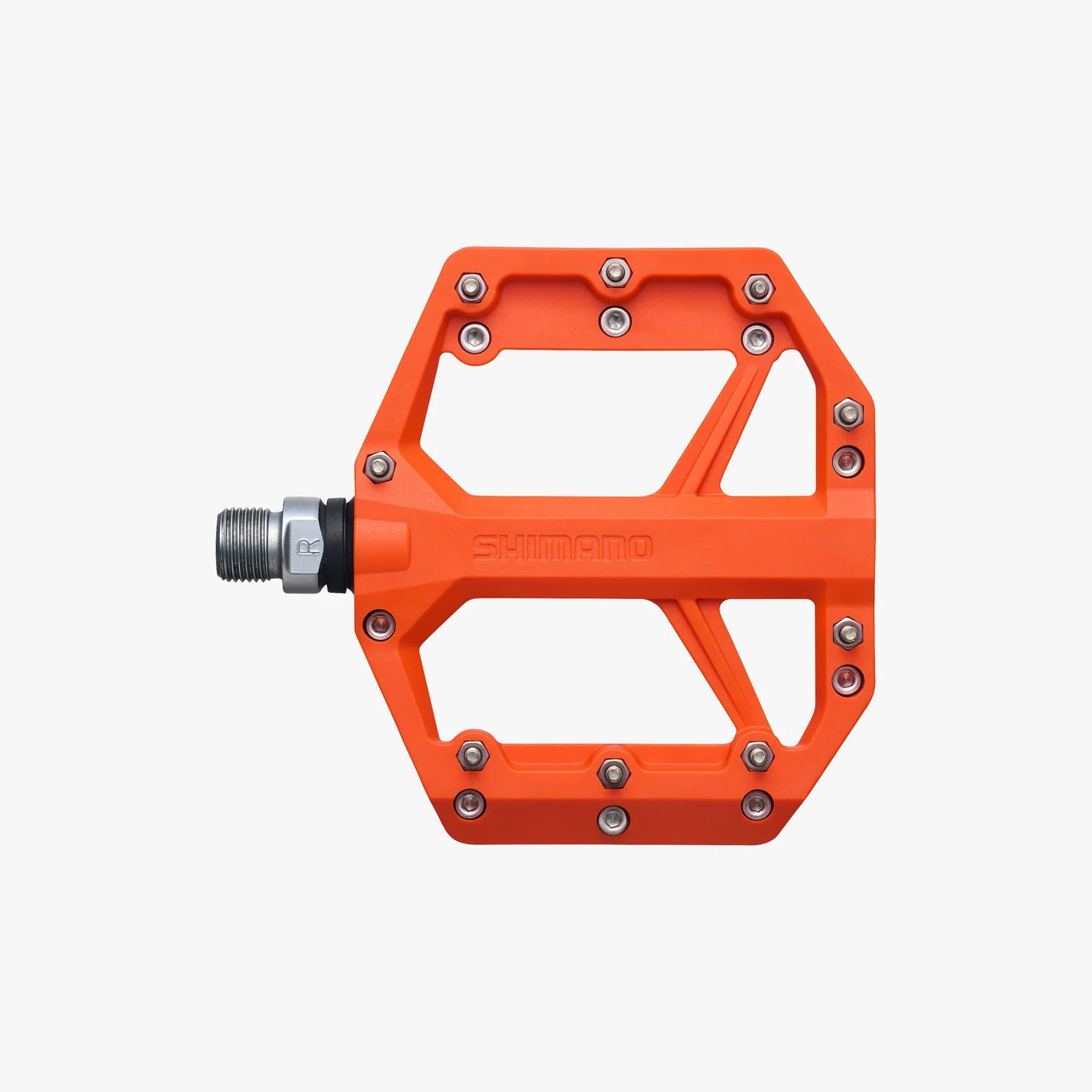 The ideal flat pedal, Shimano’s PD-GR400 delivers a perfectly balanced blend of low weight, grip, stability, and durability. Outfitted with nine removable pins per side, these lightweight resin composite body pedals keep your feet securely in place, while also permitting critical foot repositioning so you can maintain balance and control no what the trail throws at you.