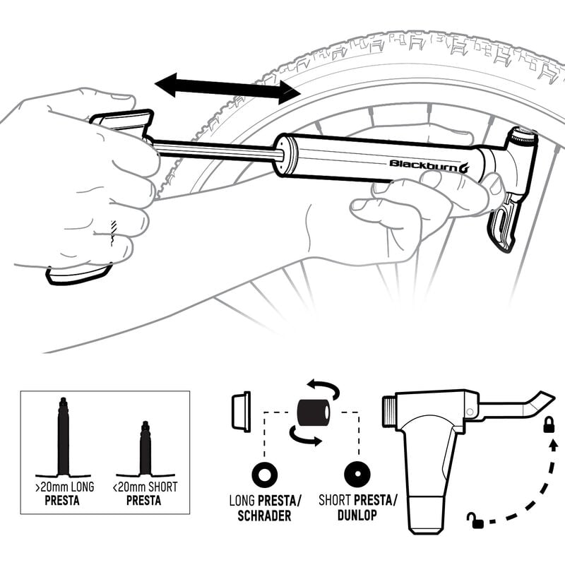 Dual Stroke - This design pumps air into your tire both when pushing and pulling.