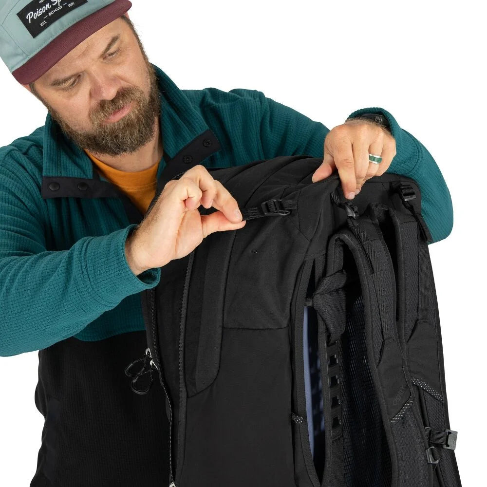 - 26 L to 34 L zippered pack expansion with included upper compression for stability when pack is expanded