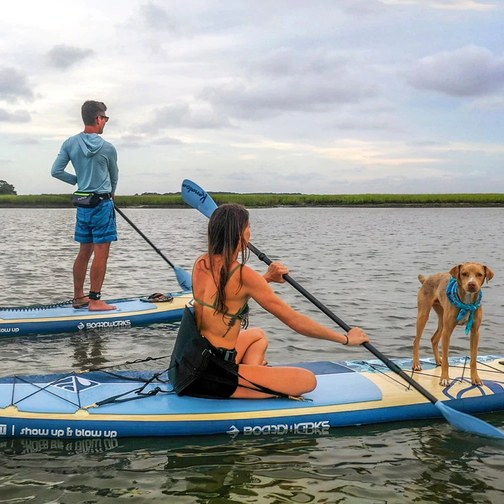 Multi-Purpose Paddle Board: This inflatable paddle board is perfect for cruising, yoga or even fishing on calmer waters like lakes, rivers and harbors.