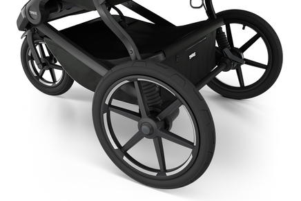 Quality suspension combined with air-filled tires makes for a smooth ride for both parent and child on any terrain