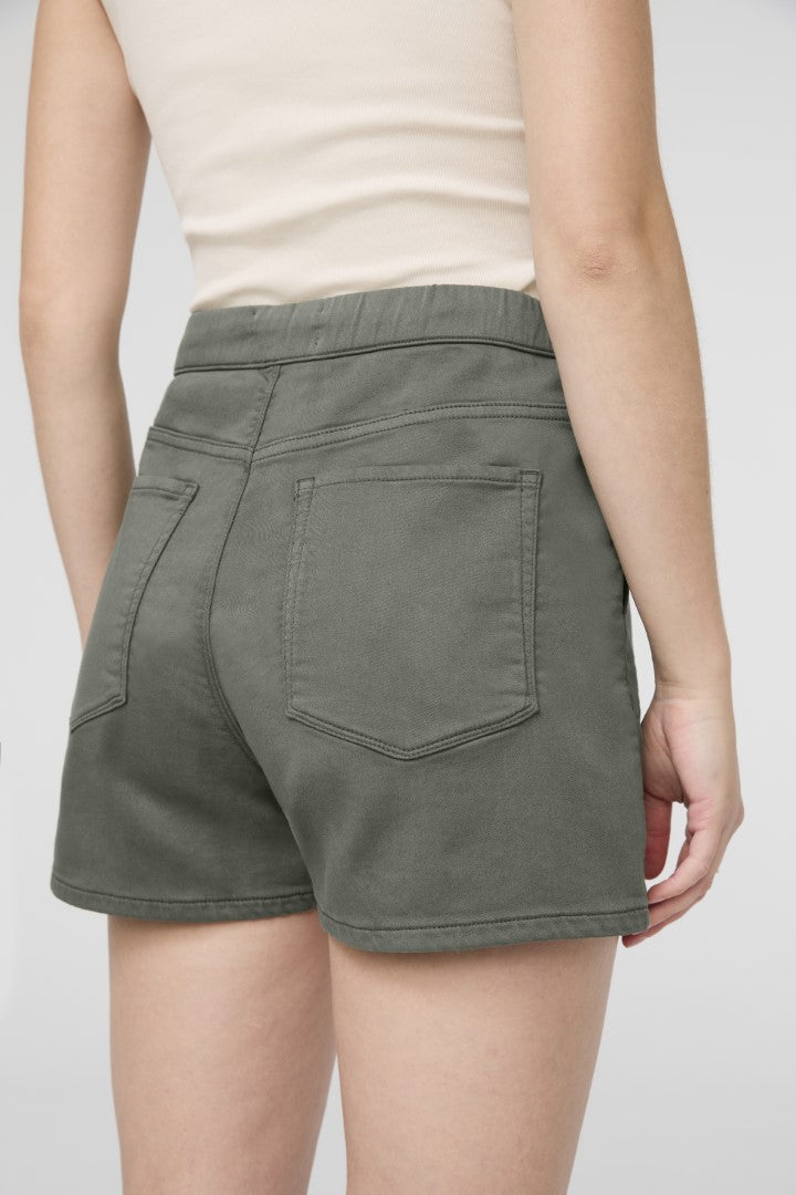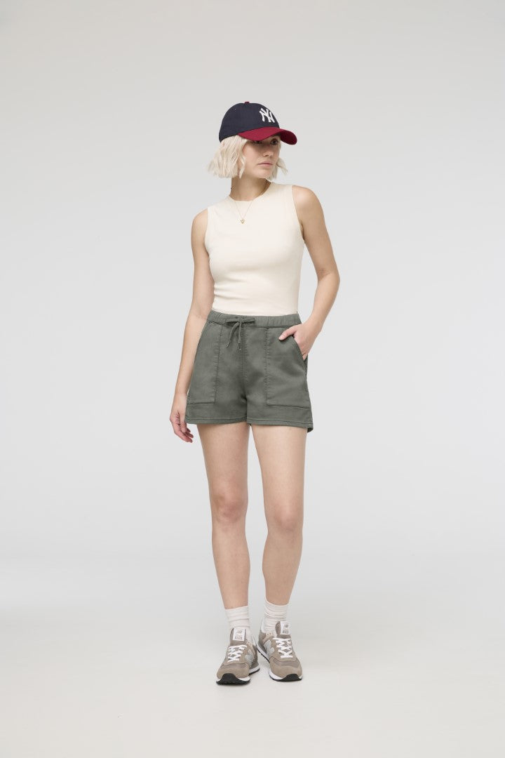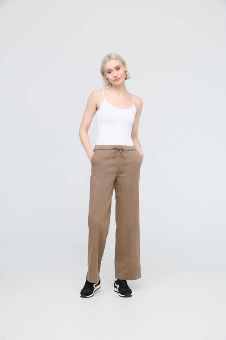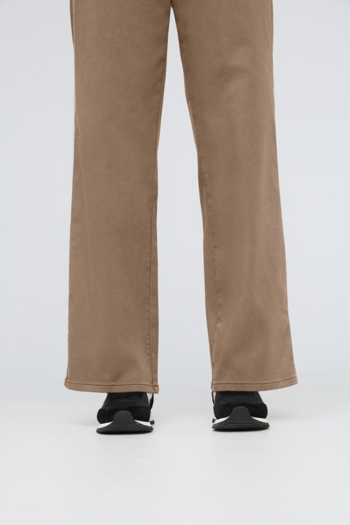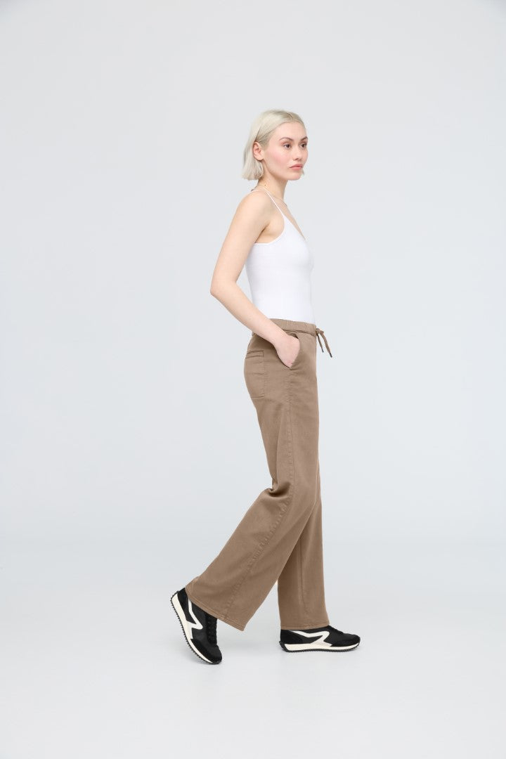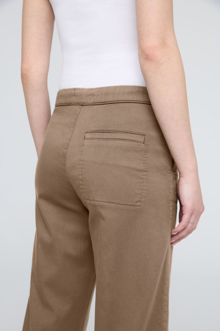 Plant-based fabric with the structure of a woven and the softness of a knit, offering the comfort of a sweatpant with a more elevated appearance. The plant-derived TENCEL™ fibres naturally inhibit bacterial growth and provide a soft hand feel, further enhanced by stretch for added comfort.