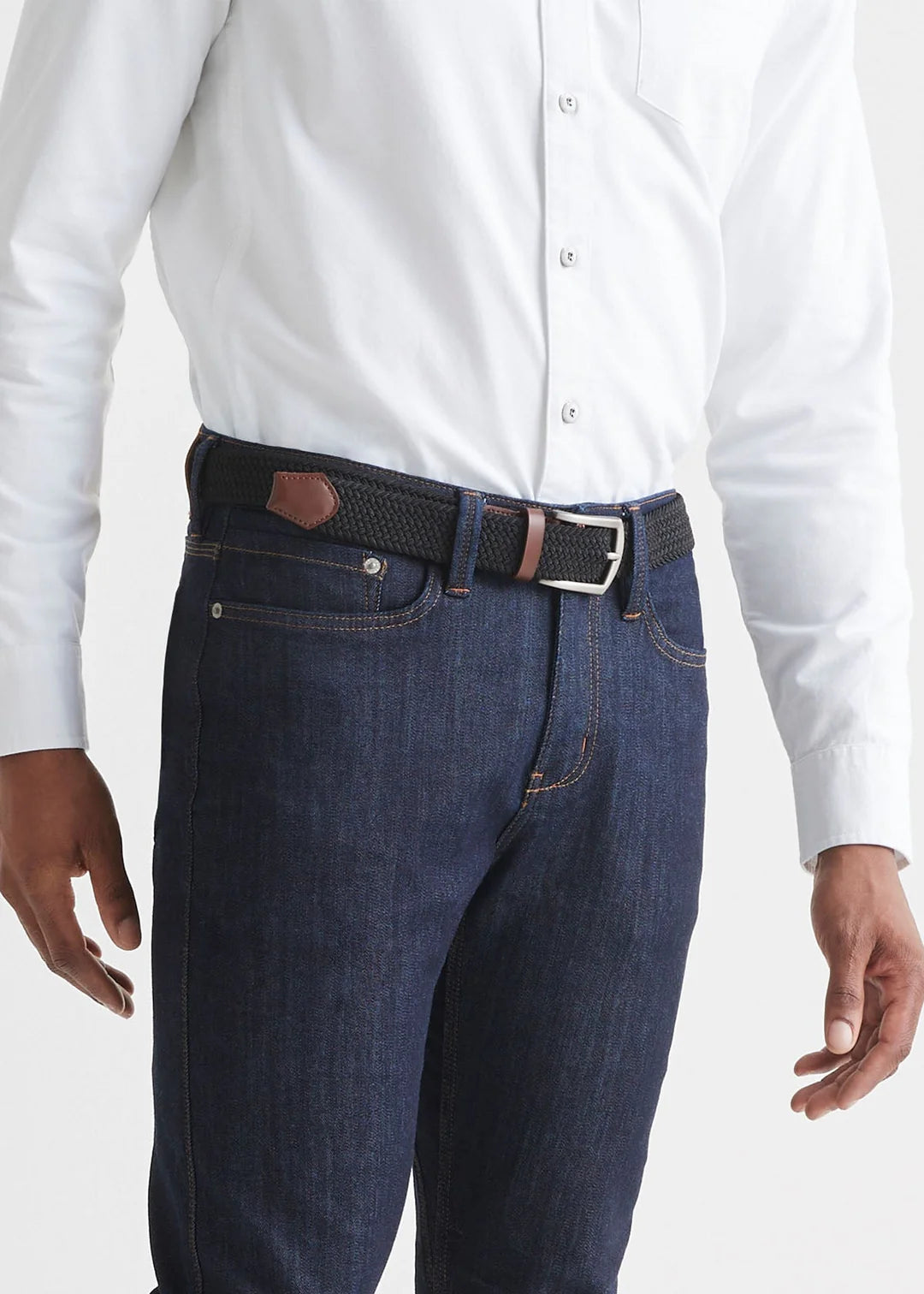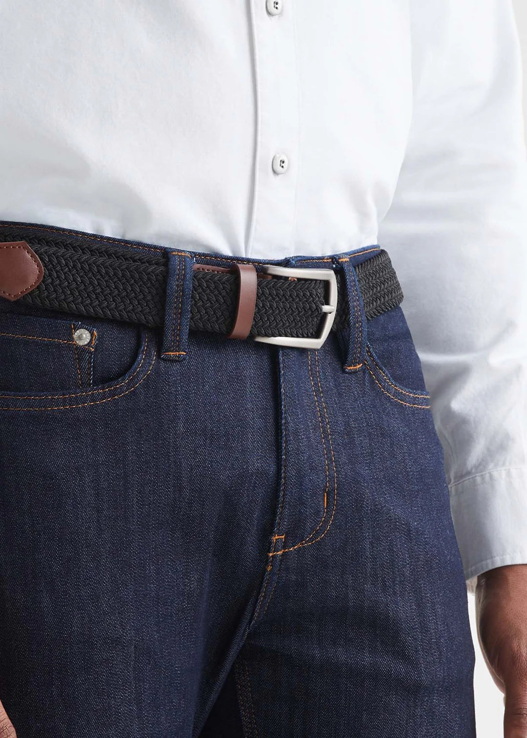 The braided design gives a customizable fit while high stretch provides all-day comfort. Leather detailing offers versatility for easy styling.