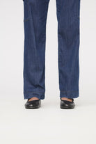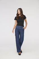 Tailored to fit high on the waist with a slim hip, relaxed thigh, and wide leg opening, this style balances a contemporary silhouette with functional design.