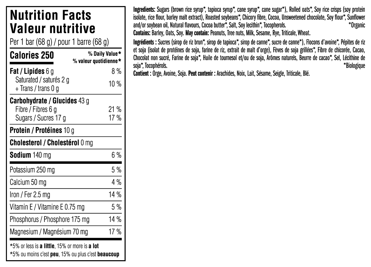 CLIF BAR is the original energy bar made with wholesome ingredients that deliver energy. CLIF BARs have whole ingredients you can see and taste, such as rolled oats, fruits and nuts. Each bar contains carbohydrates, protein, fibre, fat and 23 vitamins and minerals.