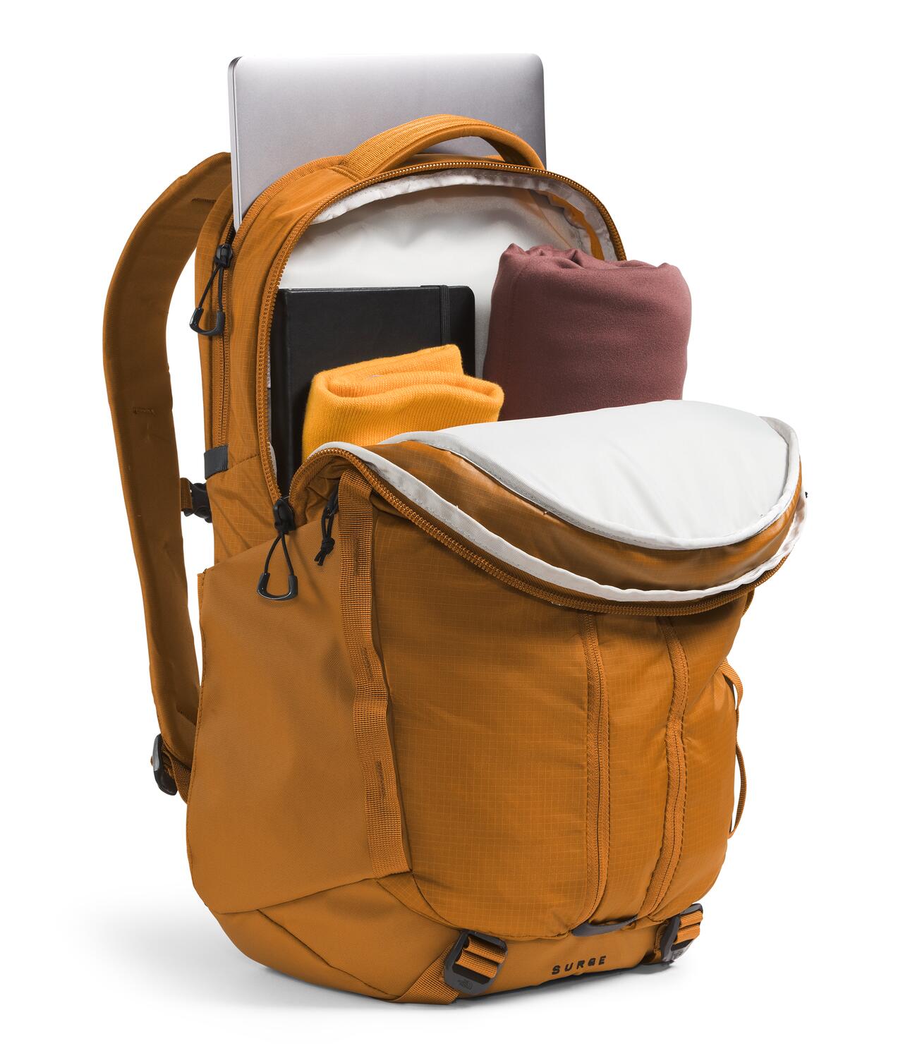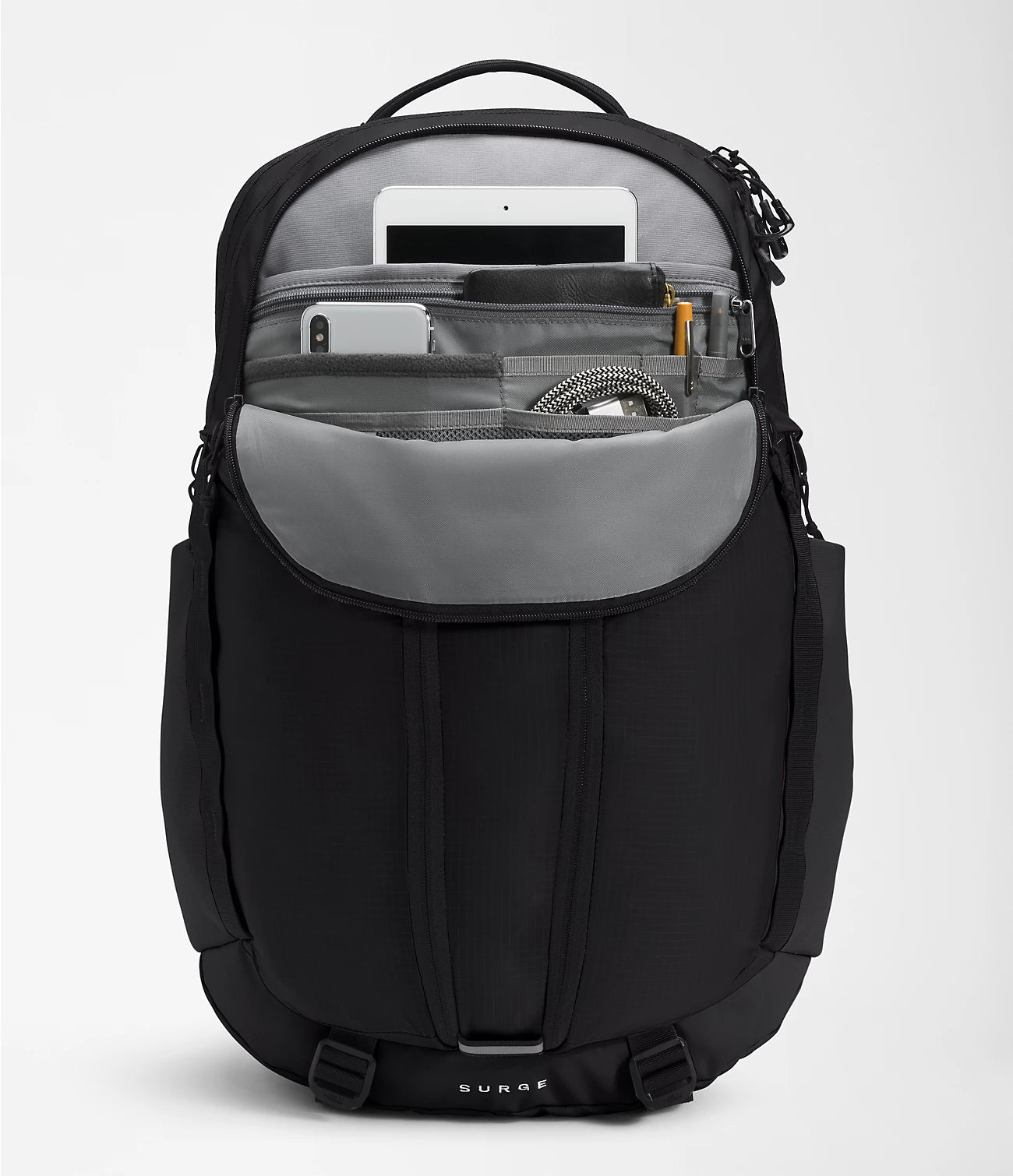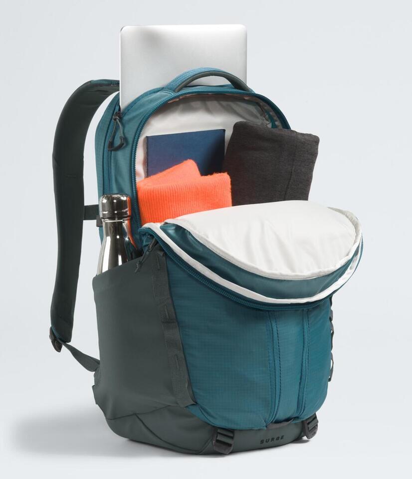 With a 31-liter capacity, the Surge Backpack is a spacious, streamlined pack you can take almost anywhere. Clever design features like a water-repellent finish, 15'' laptop sleeve, and the ability to stand unsupported make it indispensable.
