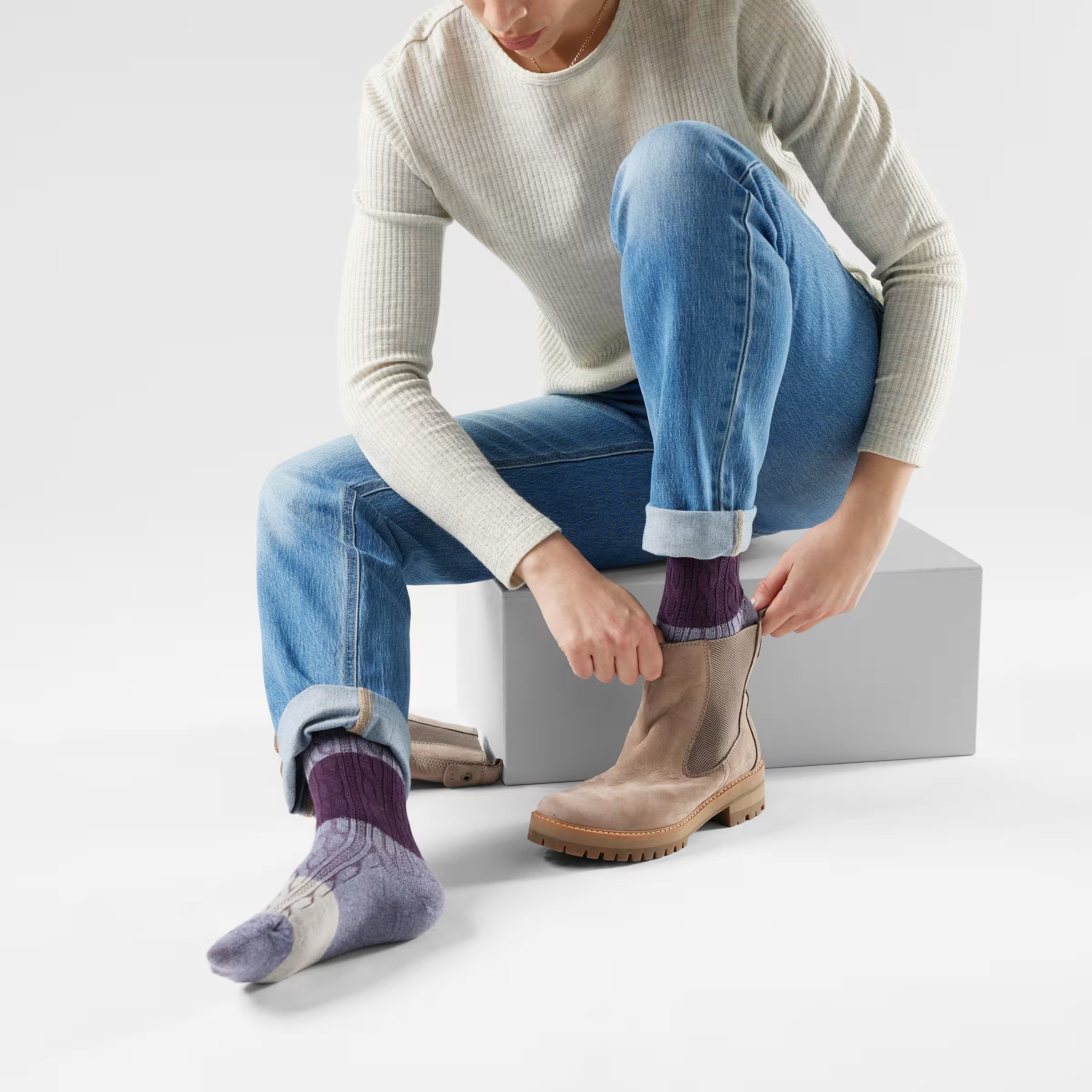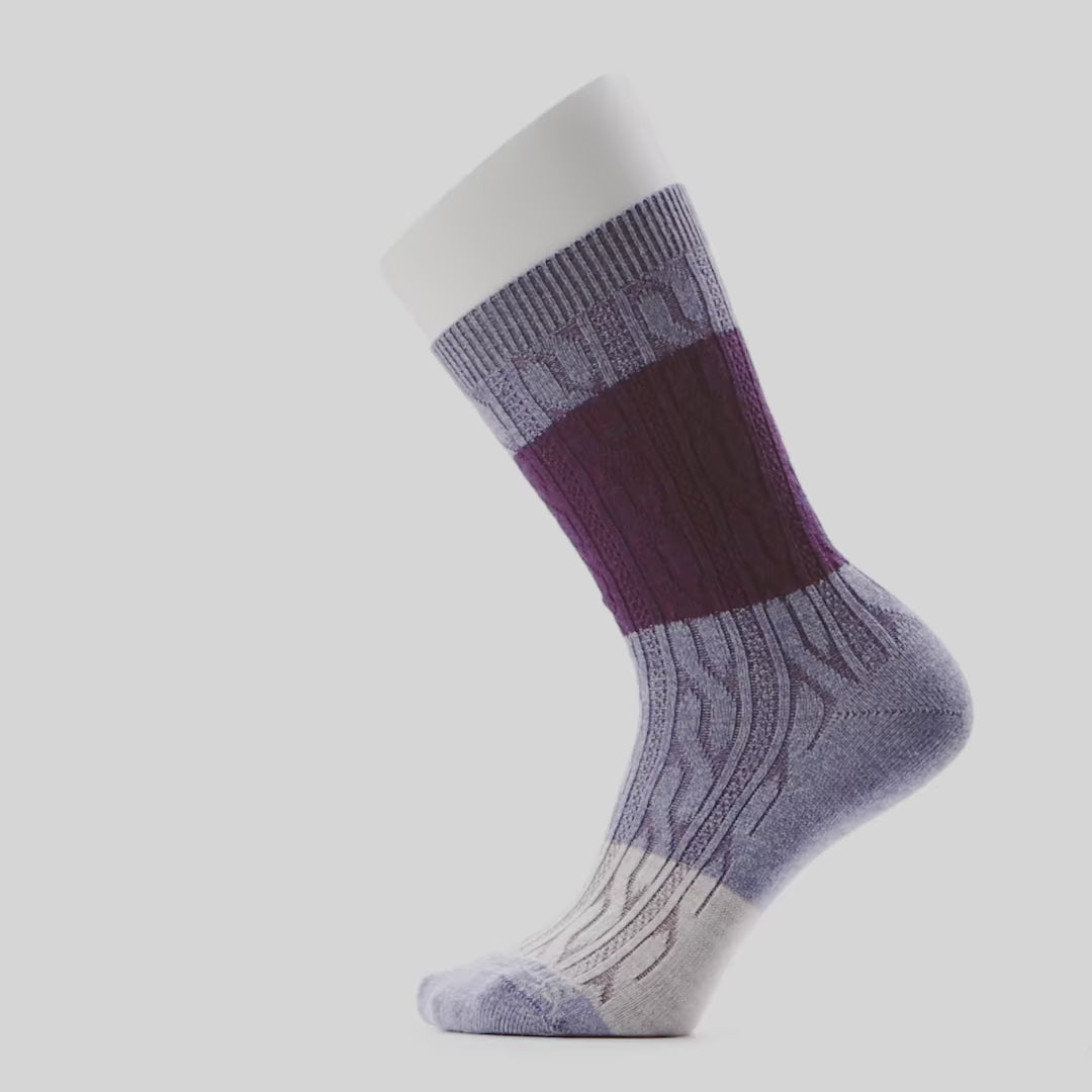 Slip on the Women's Everyday Color Block Cable Crew Socks and experience the enhanced comfort of Merino firsthand.