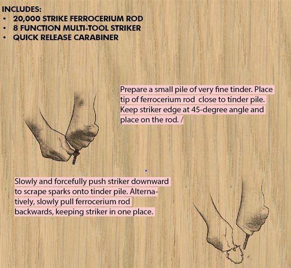 • Stainless-steel striker doubles as a multi-functional survival tool