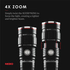 With all the features that you would expect from a SLYDE...and more! The 2nd generation SLYDE KING is equipped with programmable memory settings for each light mode, a C•O•B red light function, a 4x adjustable zoom and best of all...it’s rechargeable!