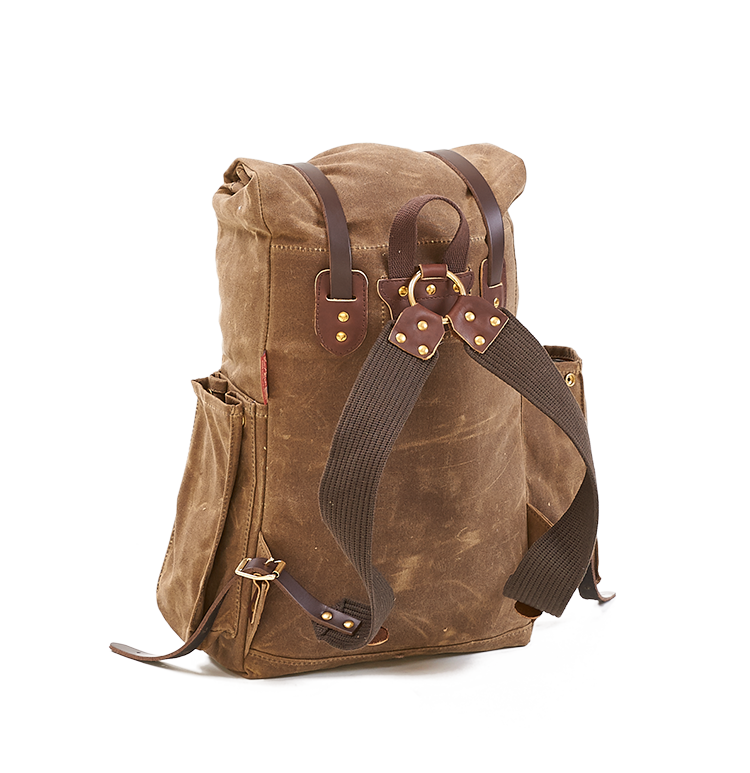 18oz waxed canvas, 10.10 waxed canvas, premium leather, solid brass hardware.