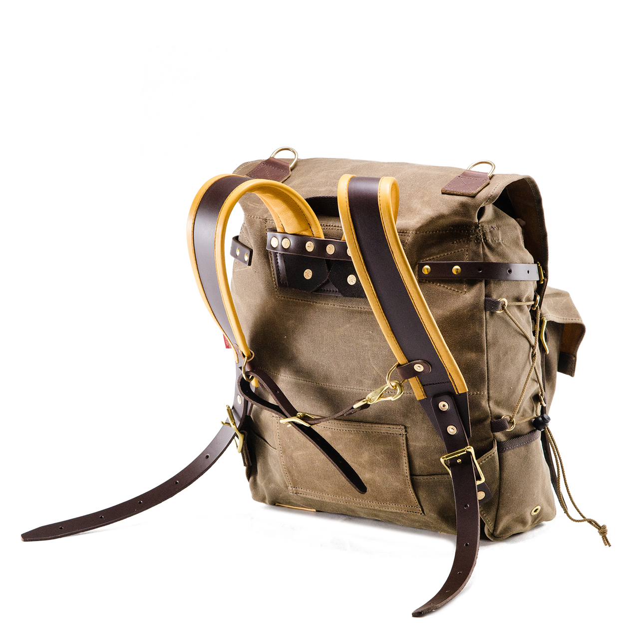 The Isle Royales are no exception. Weather and abrasion resistant waxed canvas from Fairfield Textiles in New Jersey, premium leather from the S.B. Foot Tannery in Red Wing, Minnesota, along with robust, solid brass hardware, all come together with heavy thread and pack building know-how by our experienced sewing and production staff there in Duluth, Minnesota, USA.