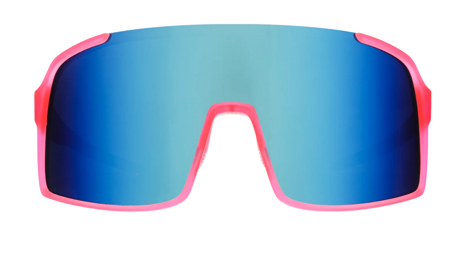 ALL occasions are worthy of a confetti cannon. Runner's toe finally healed? Bring on the cannon! Struck out at the big game? Cannon. These hot pink semi-rimless shield sunglasses w/ teal reflective lenses know how to bring the confetti cannon vibes.