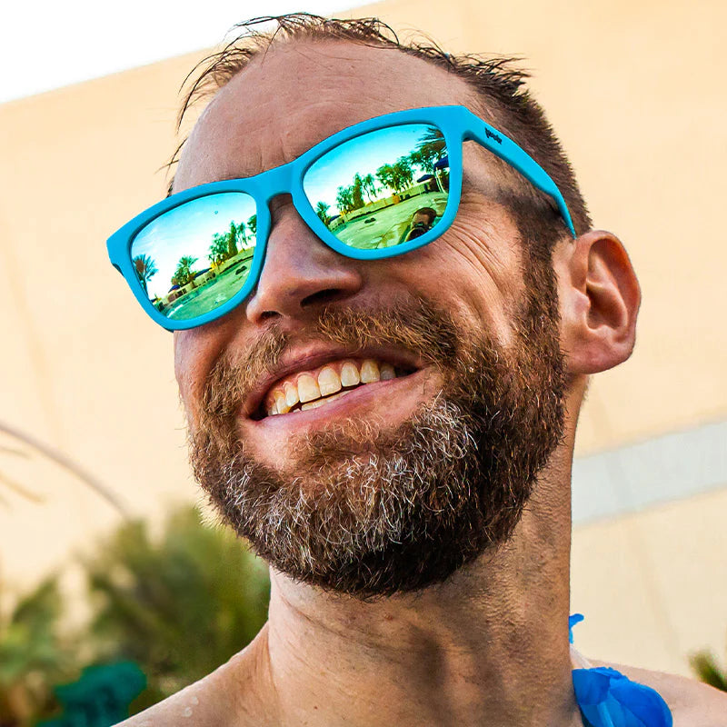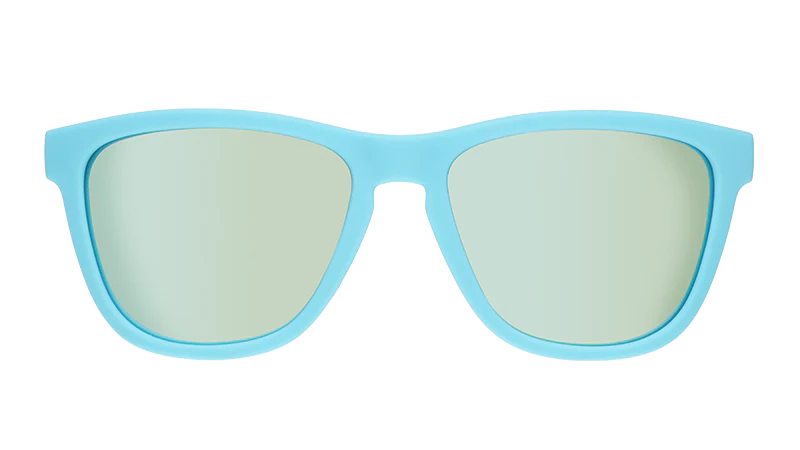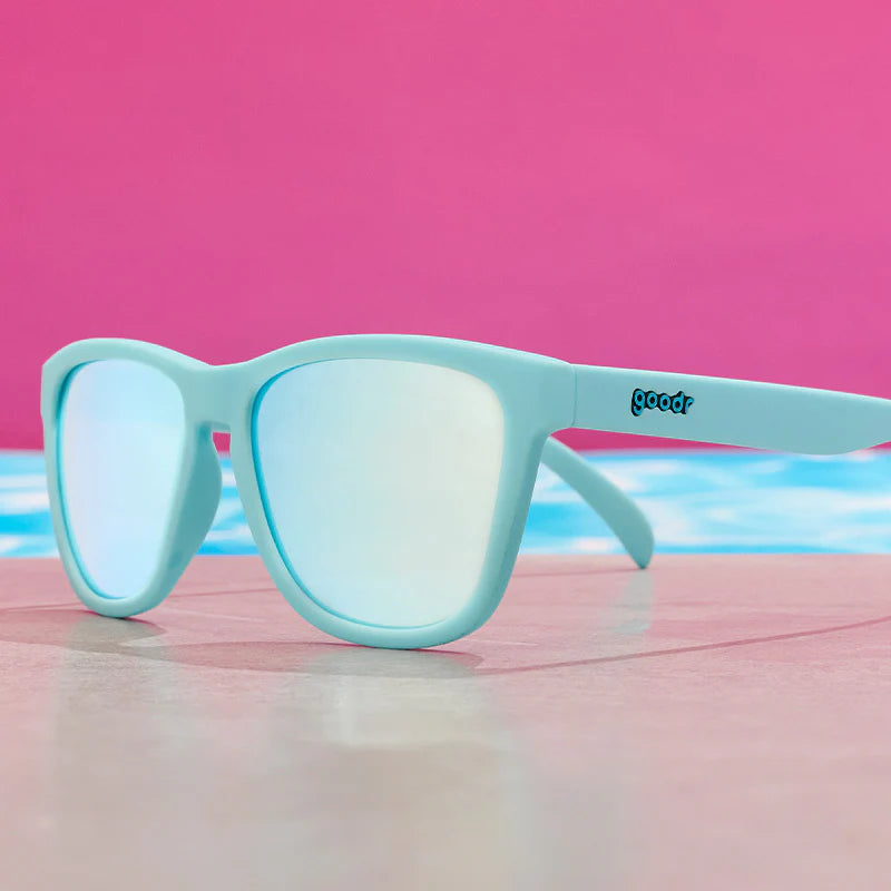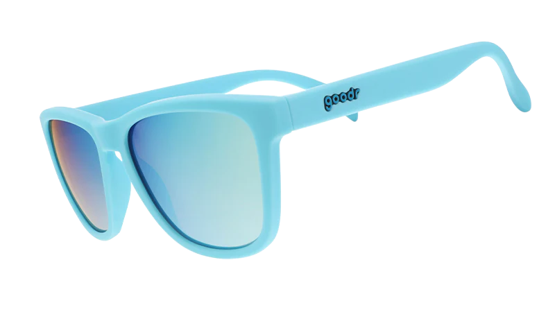 These cult-favorite baby blue Pool Party Pregame OG sunnies with icy blue reflective lenses were originally part of Goodr's 2019 Sin City collection.