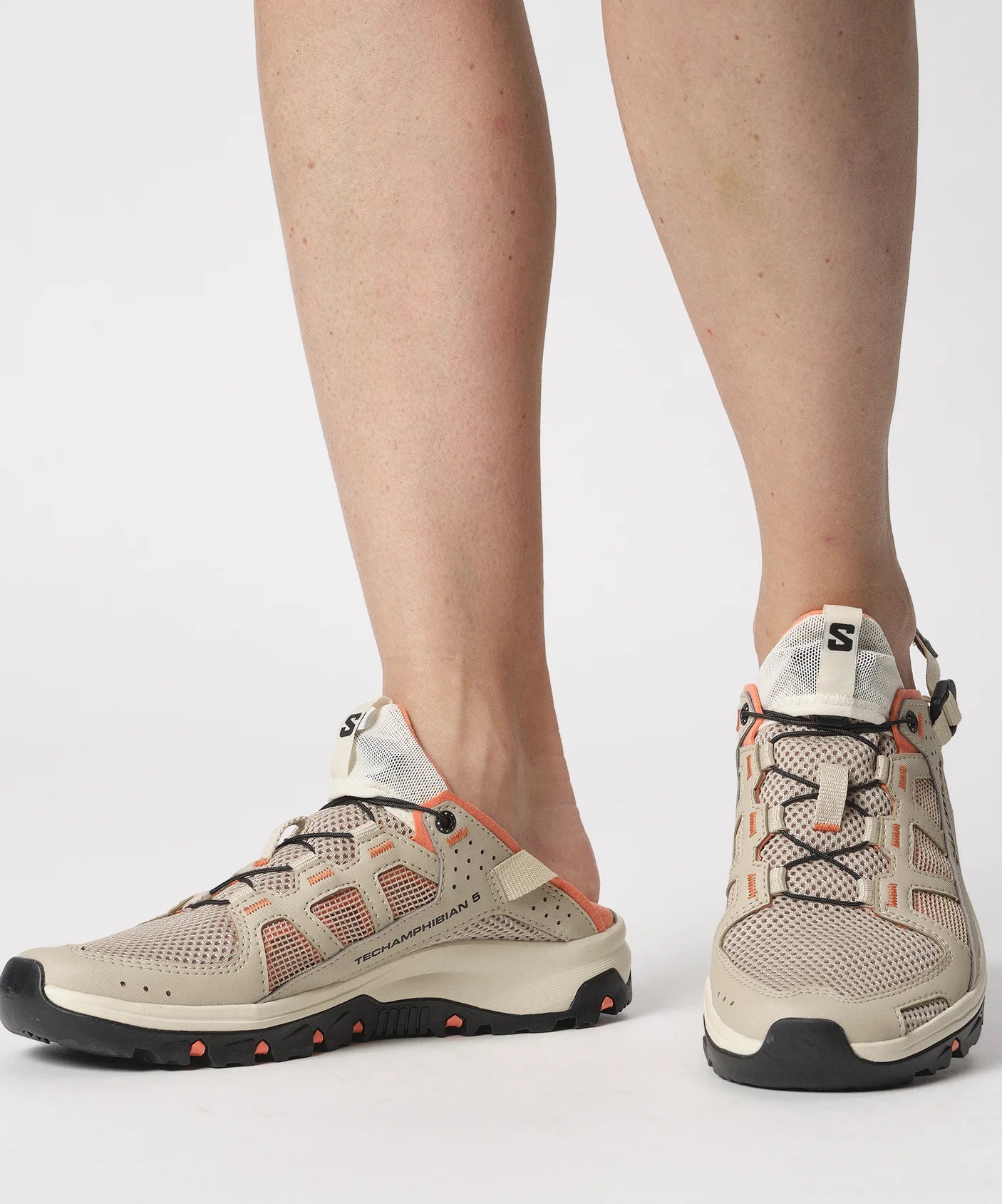 Fully committed to wet and wild exploits, TECHAMPHIBIAN 5’s reinforced toe cap and fully stitched construction will keep your feet protected while its sticky outsole ensures grip on slippery terrain. With a collapsible heel for versatility and ease of use, and quick drying, breathable materials on the upper.