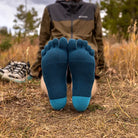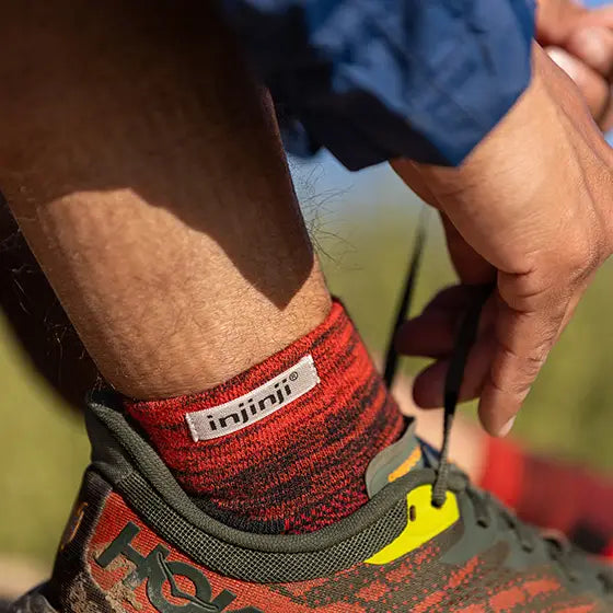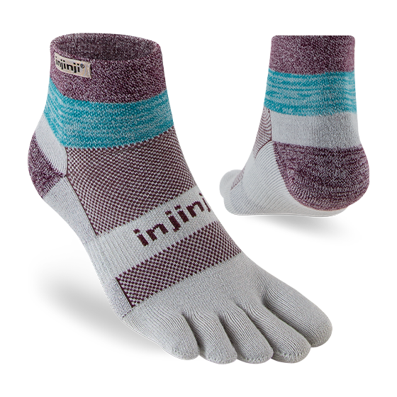 Snug, but not binding, the double-cuffed mini-crew height seals out grit and debris. COOLMAX® EcoMade fibers wick away moisture, nylon adds durability, and Lycra® holds the fit. Arch support is built in, mesh at the top adds breathability, and our unique design wraps fabric around each toe to minimize blisters, more effectively wick moisture, and give you the freedom to utilize your whole foot on narrow, gnarly trails during training runs and ultra marathons.