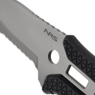 - The partially serrated edge covers all your cutting needs. The 'reverse scallop' serrations facilitate severing tough fibers.