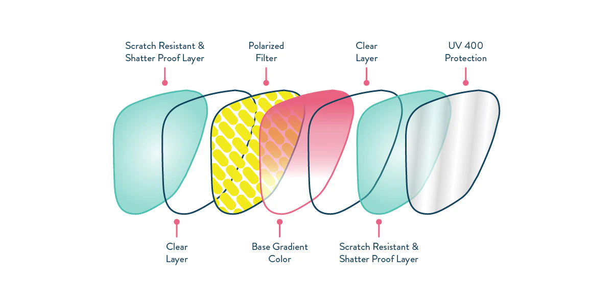Glare-reducing, polarized lenses and UV400 protection that blocks 100% of those harmful UVA and UVB rays.
