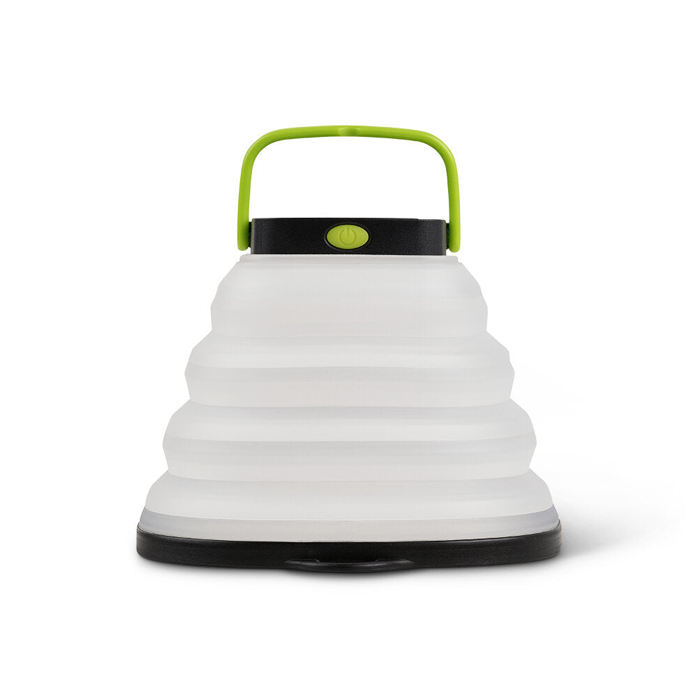 Hang it, light it, crush it. A solar-powered lantern designed for convenience. Features three light settings and a flickering candle mode. Recharge with any USB port or use the built-in solar panel.