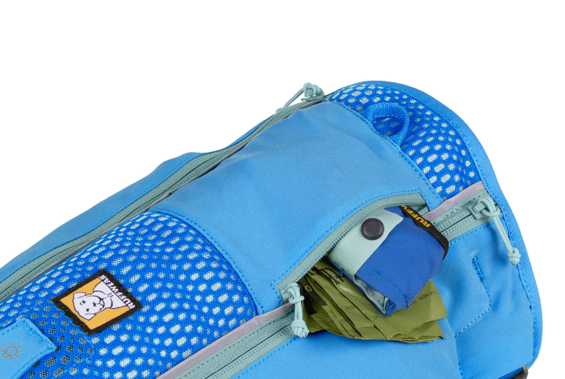 Mindful design and material choices keep the vest breathable, balanced, and bounce-free. Two zippered side pockets hold the two included Hydrapak® soft flasks, and you can stash the Trail Runner™ Bowl and pick-up bags in the top zippered pocket. A reinforced webbing tow loop at the rear offers a strong leash attachment point, optimally positioned for dogs that like to take the lead.