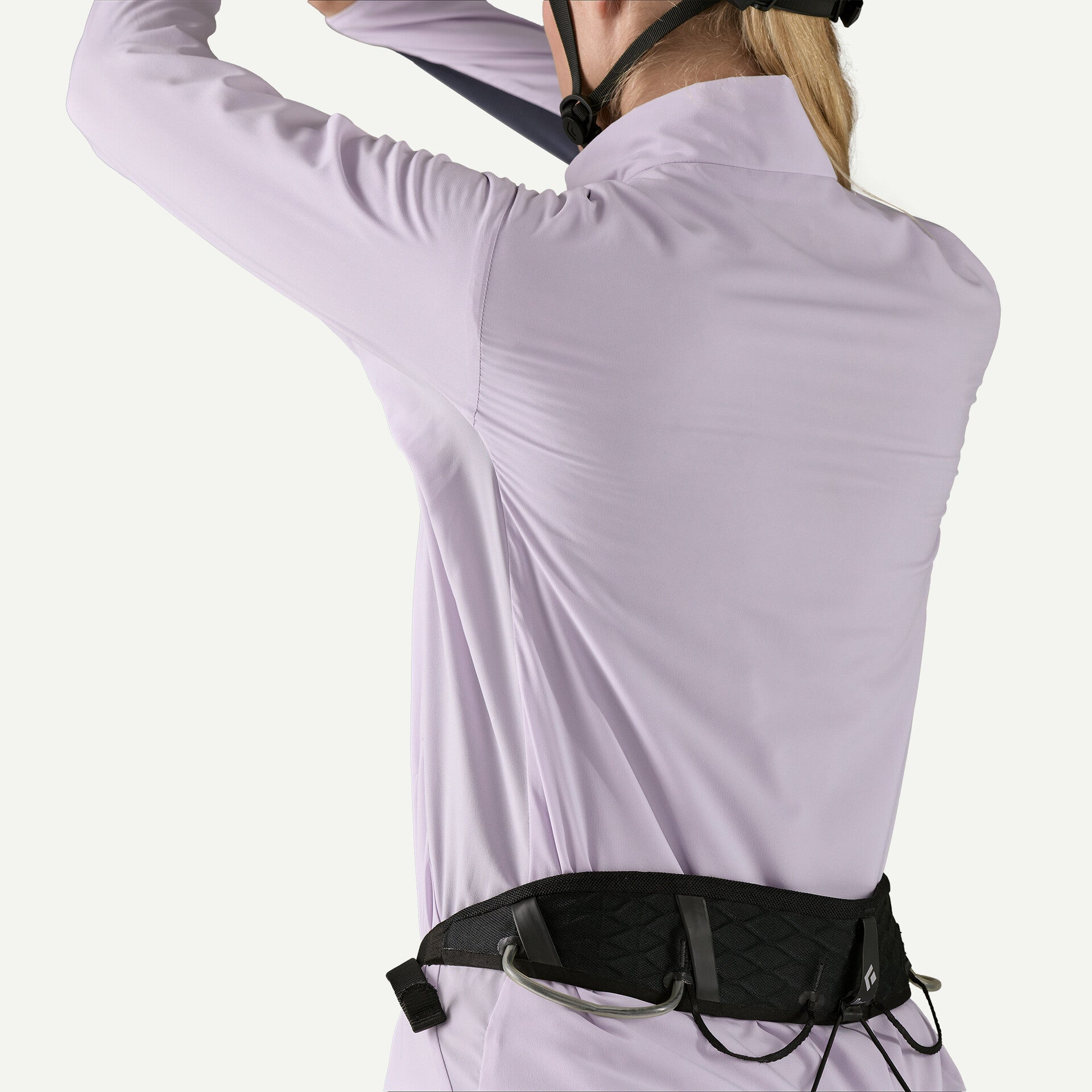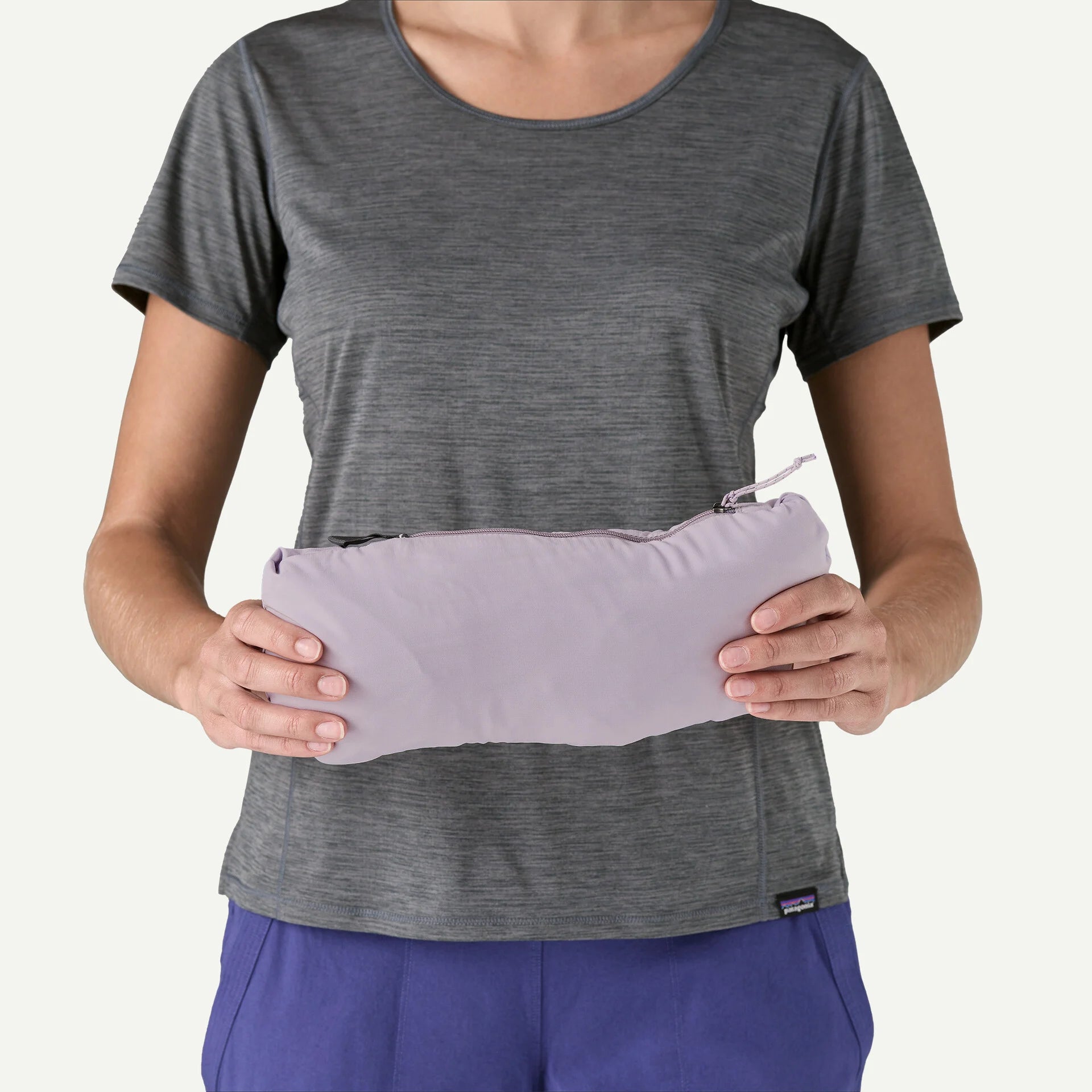 Stretchy, soft, moisture-wicking and quick-drying Capilene® Cool Lightweight fabric at the lower arms adds extra stretch to push the sleeves up the forearms