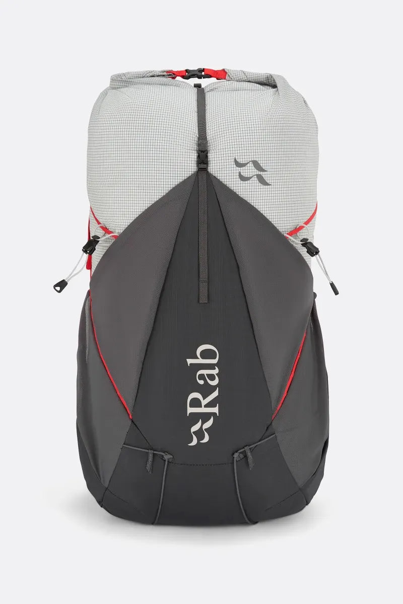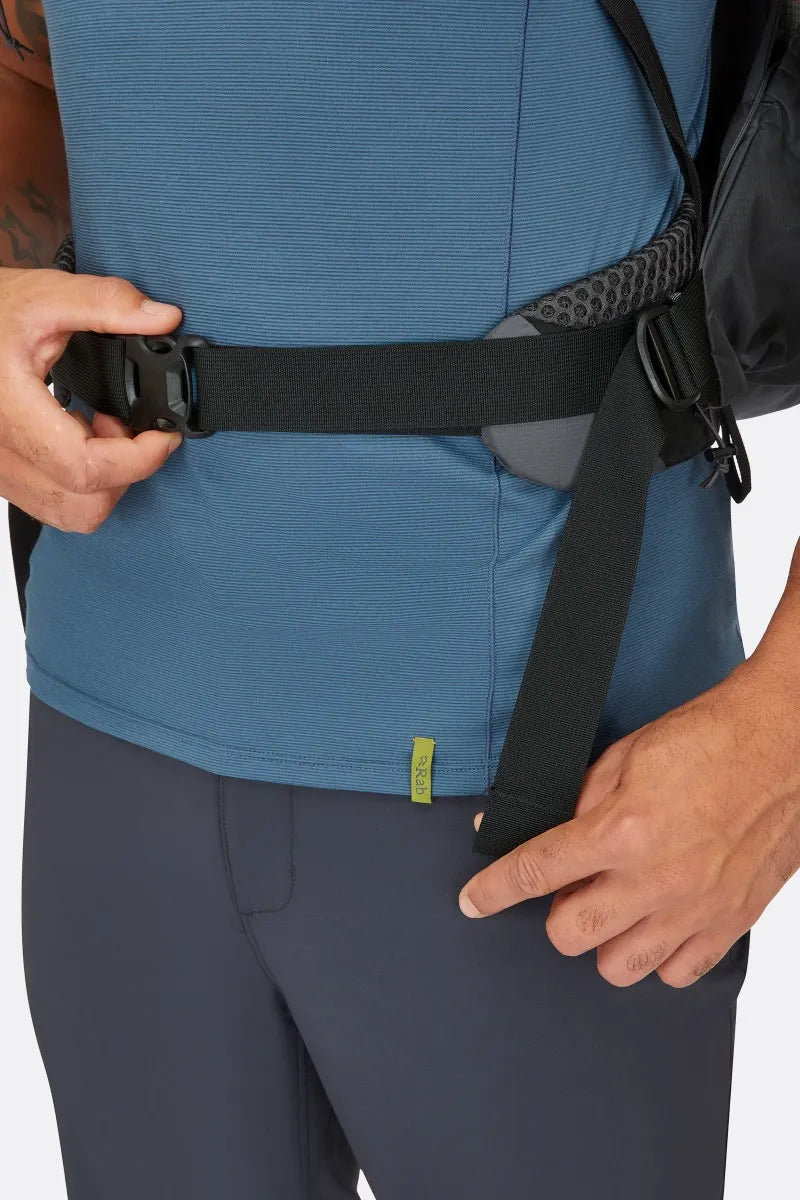 Grab kit quickly and easily with the simple roll top opening, which allows the pack to expand with larger loads and compress as you work through supplies. The large front stash swallows up extra layers, while side stash pockets and harness pockets provide on-the-go access to water and snacks. There’s also space for a 3L hydration bladder inside, and poles can be fixed to the outside of the pack when you need to keep your hands free.