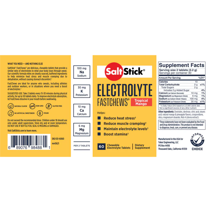- FASTCHEWS® Helps Reduce Muscle Cramping, Reduce Heat Stress, Boost Stamina, Maintain Electrolyte Levels.