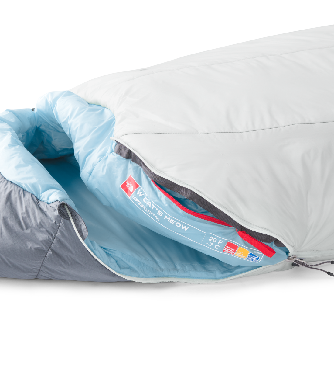 The Women's Cat’s Meow Eco is a versatile 20-degree bag with a water-repellent finish, recycled shell fabric and a fully insulated hood. This updated design includes integrated shock cords that prevent sleeping pads from "wandering" during the night.