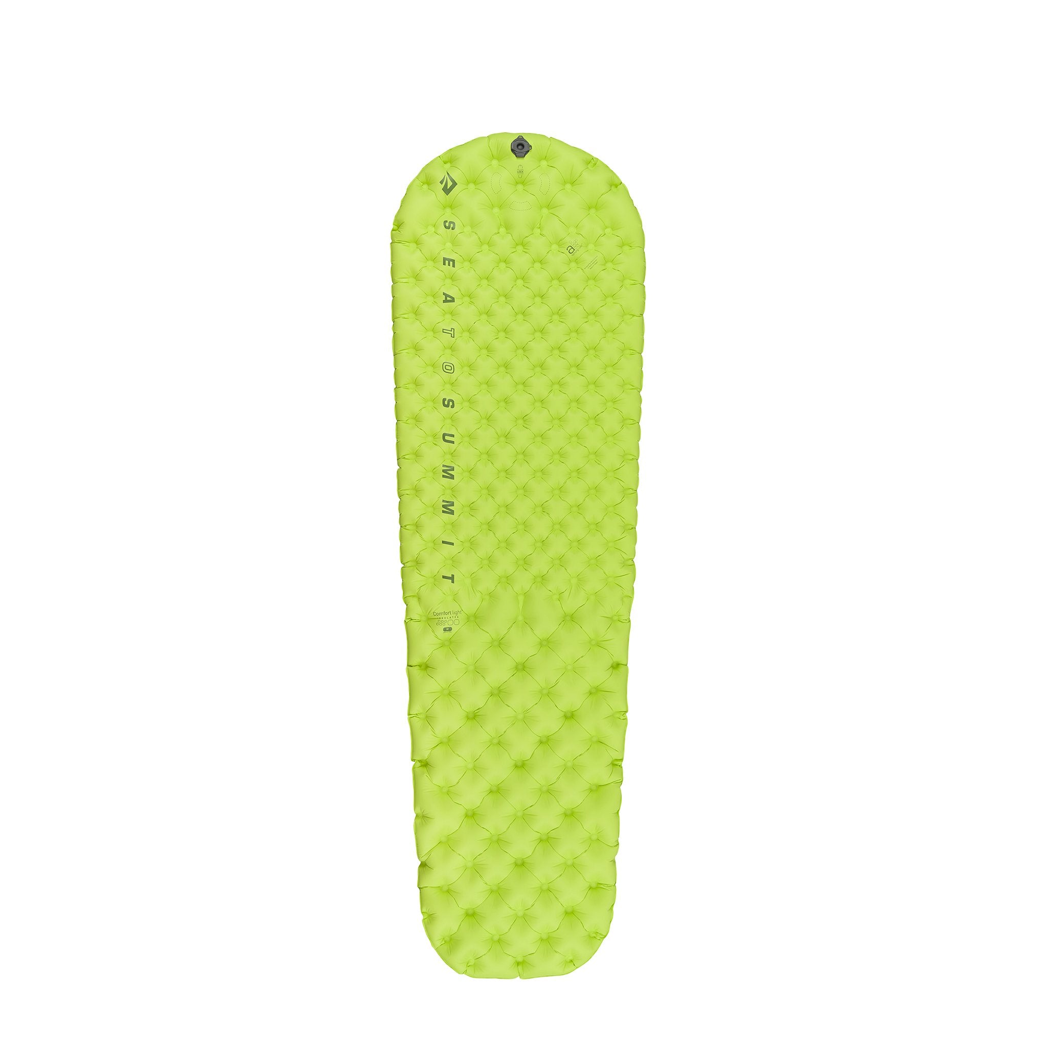 Air Sprung Cells™ are the core technology used in Sea to Summit Air Mats and are the reason you will sleep more comfortably on a Sea to Summit mat than on a conventional air pad. Inspired by the hundreds of springs found in a modern pocket sprung mattress, the hundreds of small interconnected chambers (called Air Sprung Cells™) perfectly support your weight and conform to your body contours. The Comfort Light series of mats has an internal layer of 40 D Nylon in the torso section. This allows the welds of the lower and upper cells to be offset, resulting in a greater number of cells in this area for greater support and insulation. The cells in the head and leg sections of the mat do not have this internal layer, which saves overall weight. This hybrid construction (two different weld patterns) may be the perfect option for an end user looking for more comfort and insulation without adding to much weight.