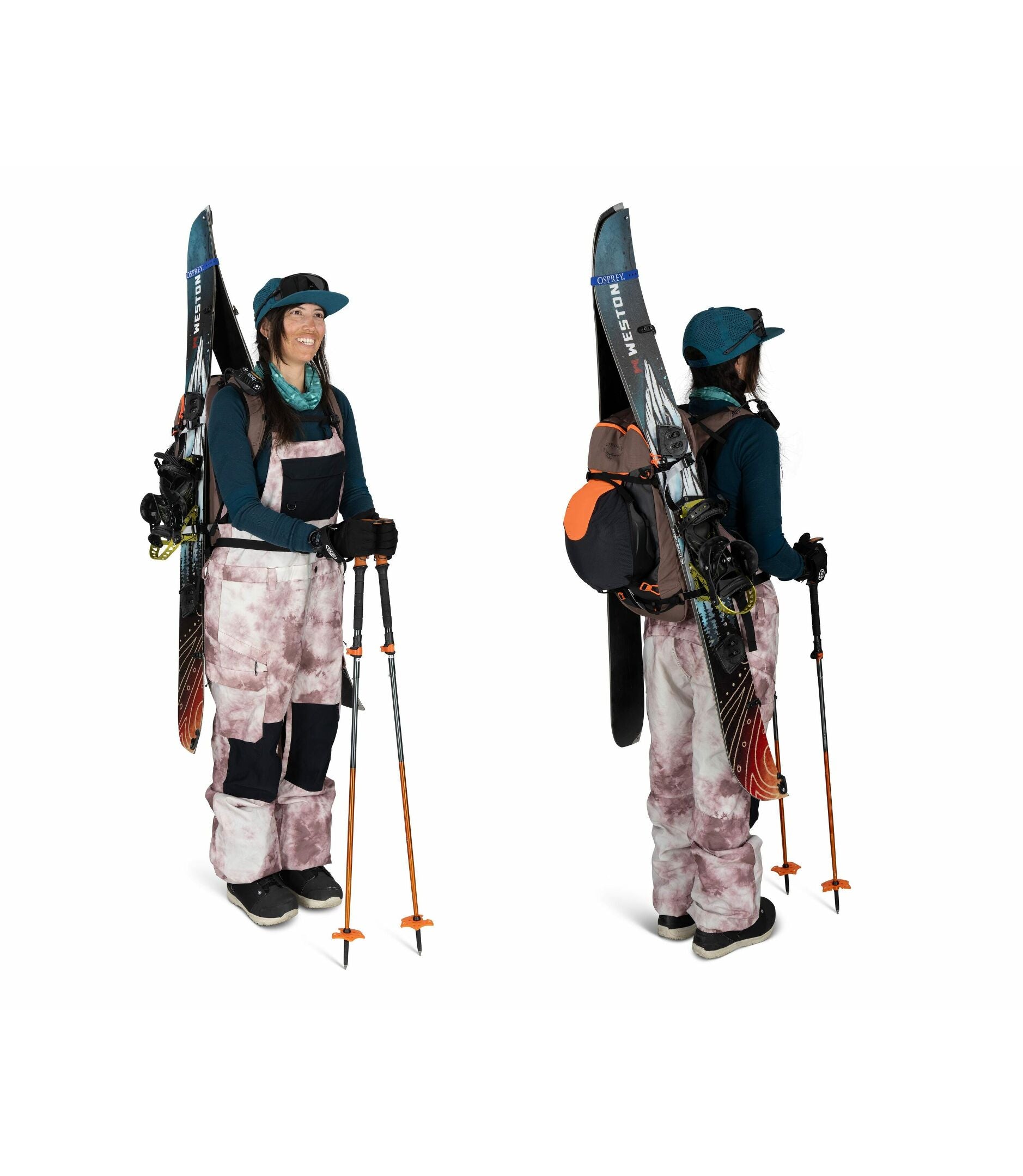 - A-frame or diagonal ski carry