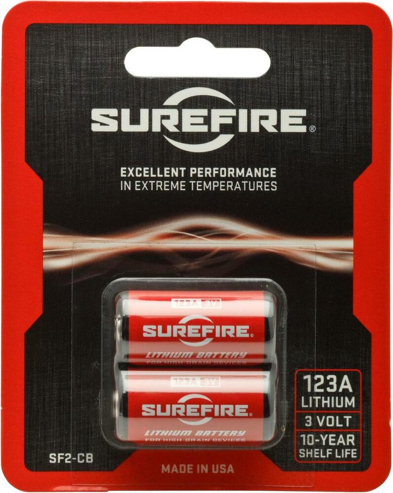 Always Be Prepared. Optimized for use in SureFire flashlights, SureFire 123A high-performance lithium batteries pack a lot of power into a very small package. And unlike alkaline batteries, SureFire batteries have a 10-year shelf life, which means they will be ready when you need them, every time. Trust in the power and durability of SureFire batteries.