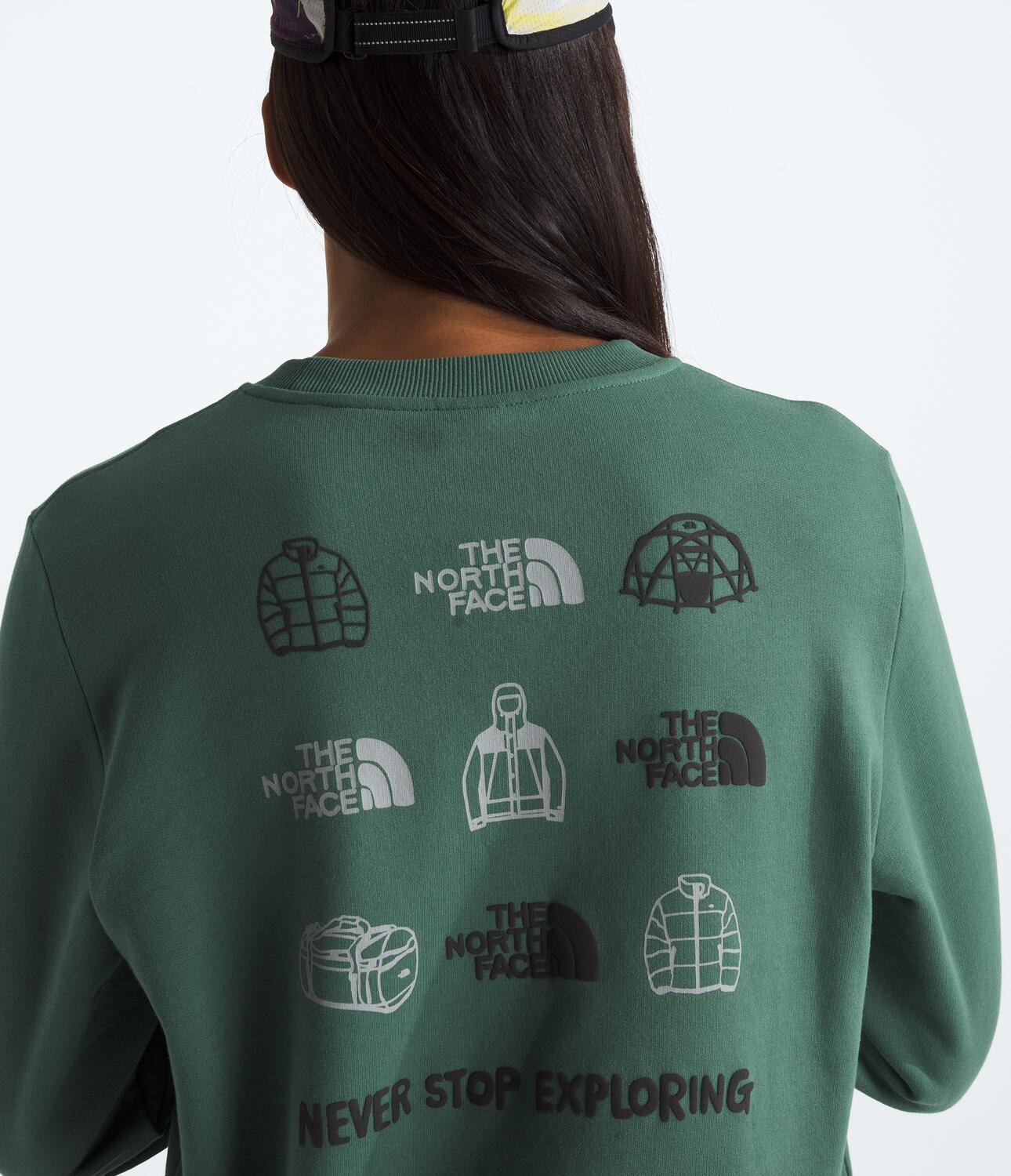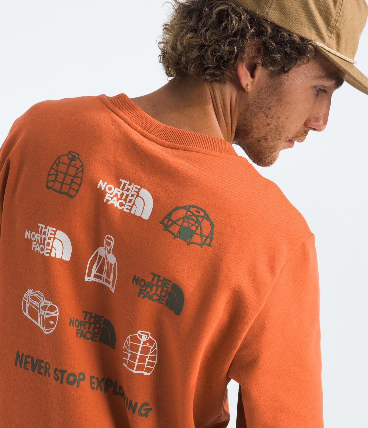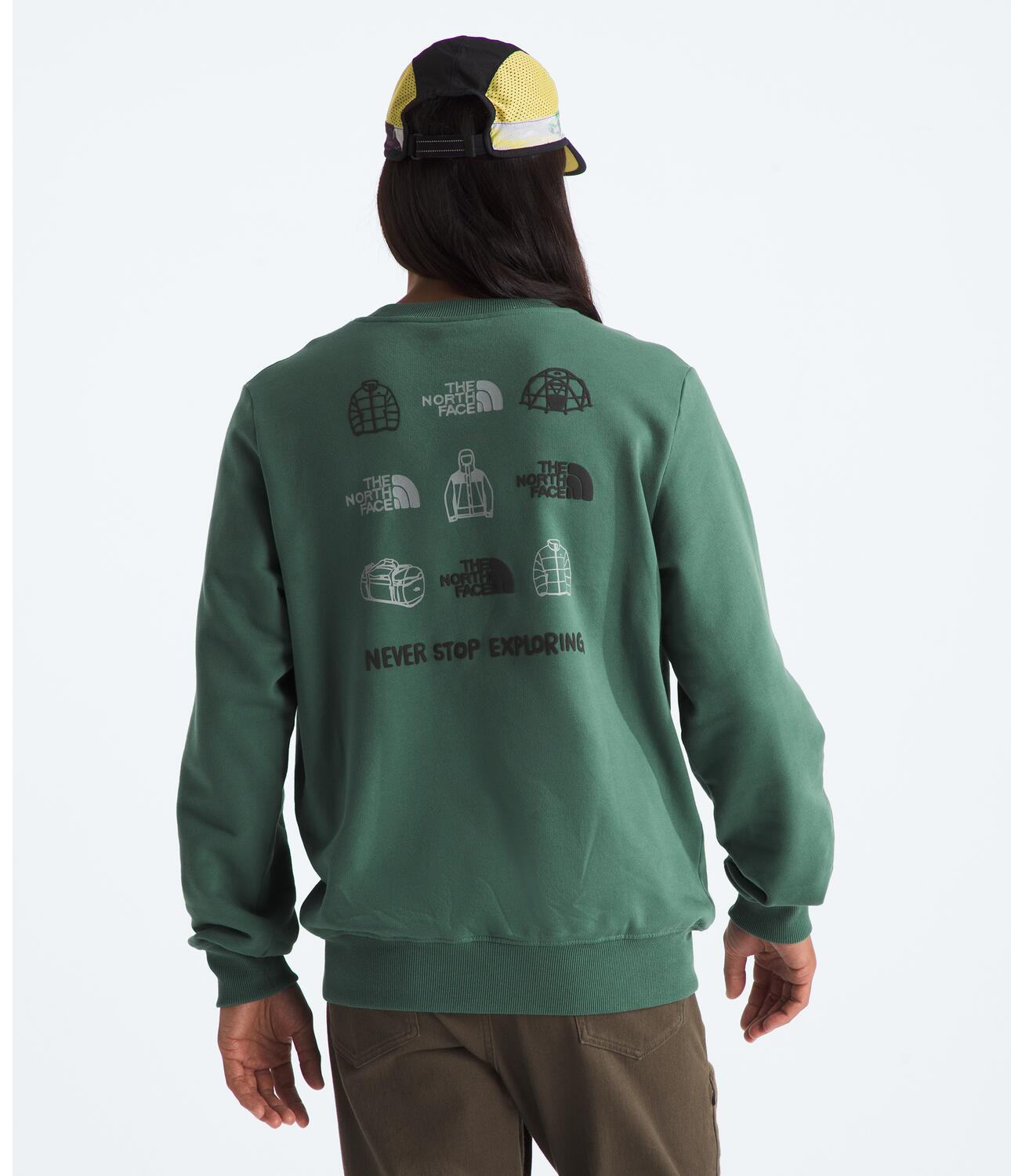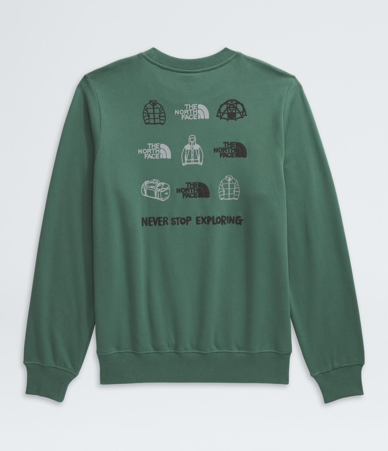 Designed for urban adventures, our Outdoor Graphic Sweatshirt is a classic style with a crew neck and 'Never Stop Exploring' graphics on the front and back. Pull it on before you get outside and explore more of the world.