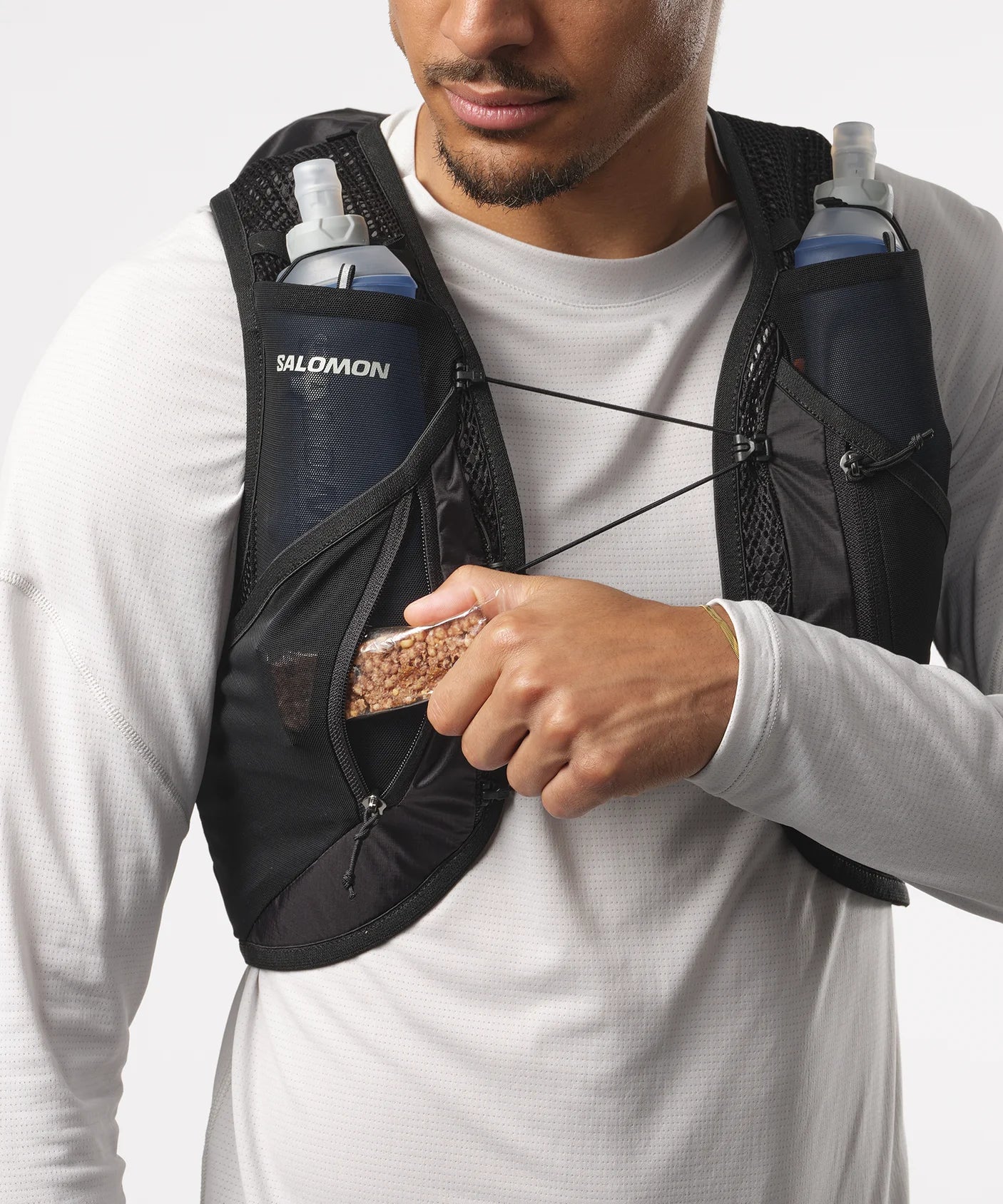 Two chest pockets provide fast access to your flasks on the go. 2 x 500ml soft flasks included. Also compatible with a 1.5-liter bladder.