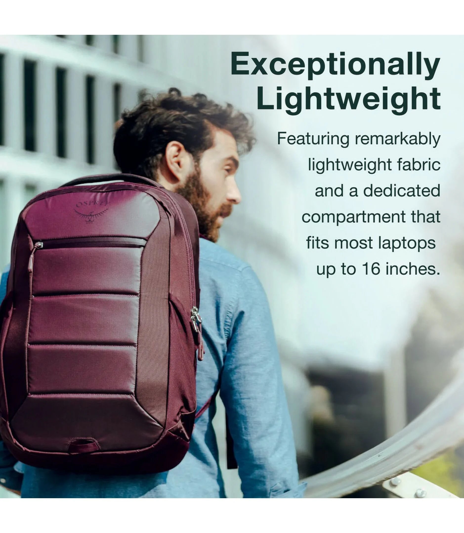 Featuring remarkably lightweight fabric and a dedicated compartment that fits most laptops up to 16 inches.