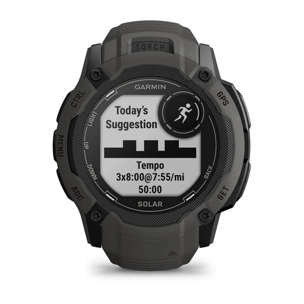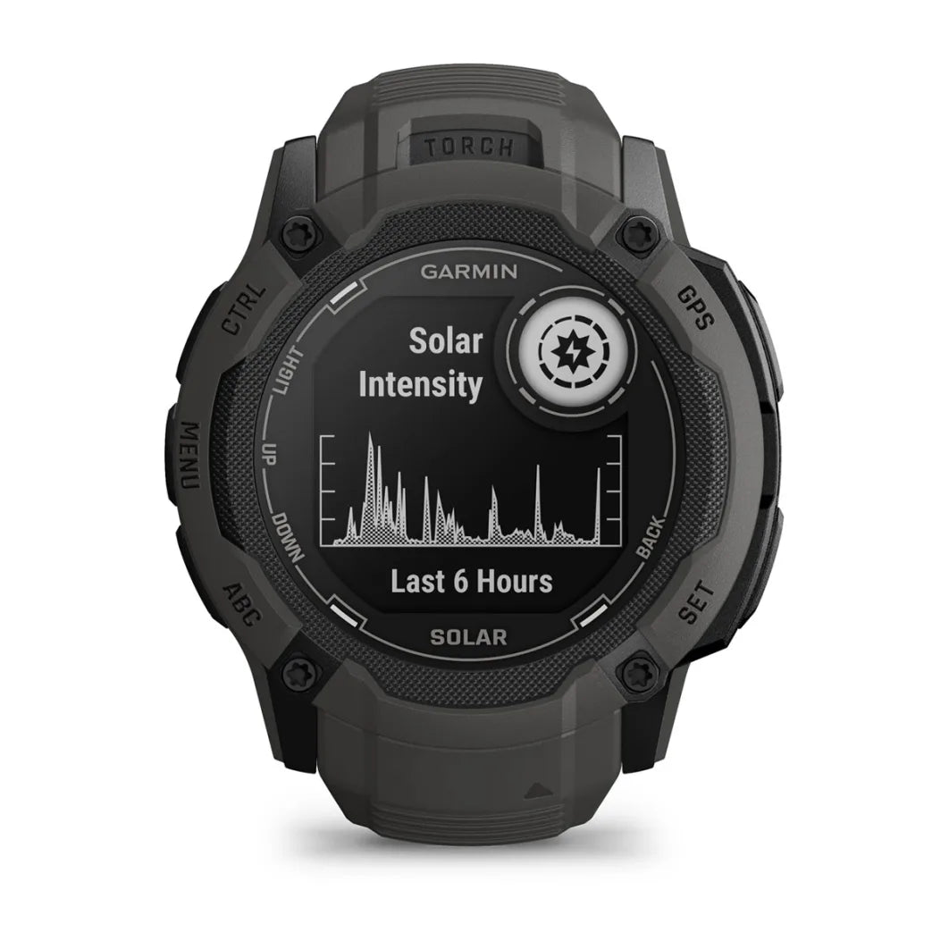 Its expansive solar charging lens keeps a larger battery going longer— powering advanced training features, a built-in flashlight, multi-band GNSS, health/wellness monitoring sensors and much more.