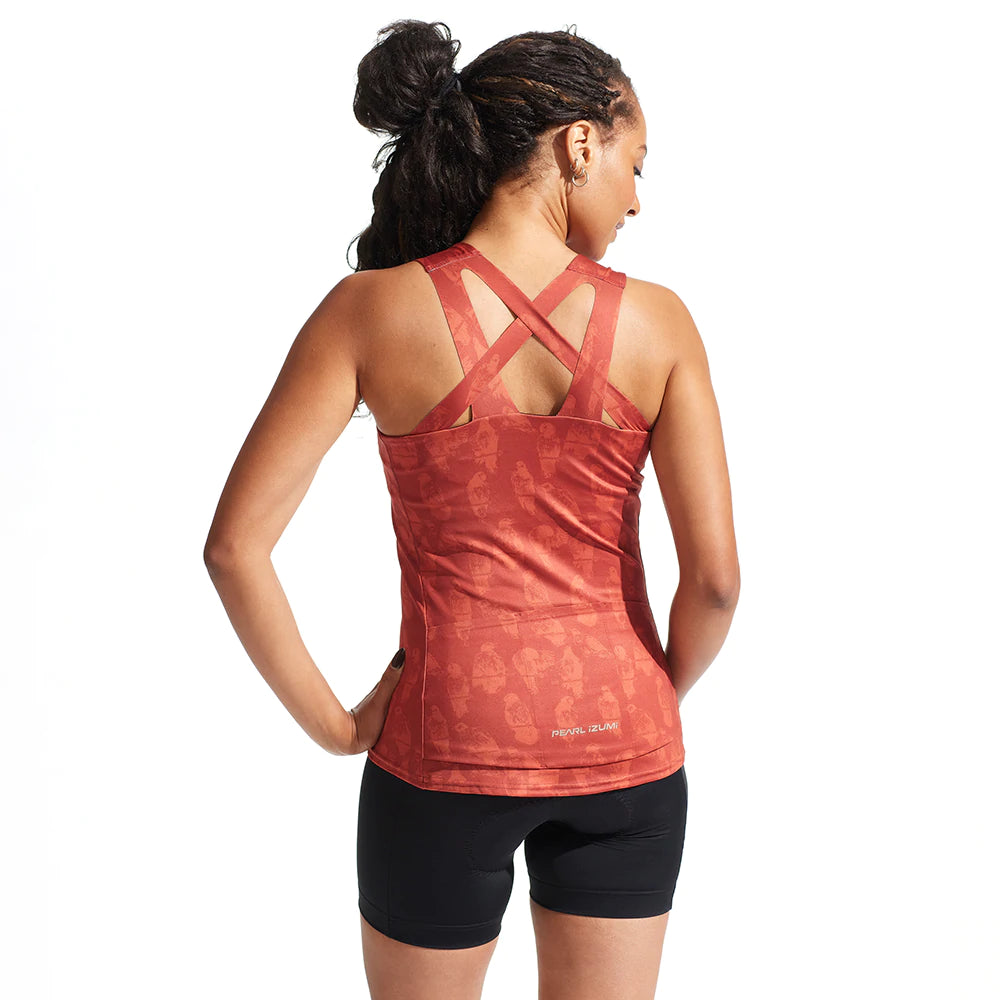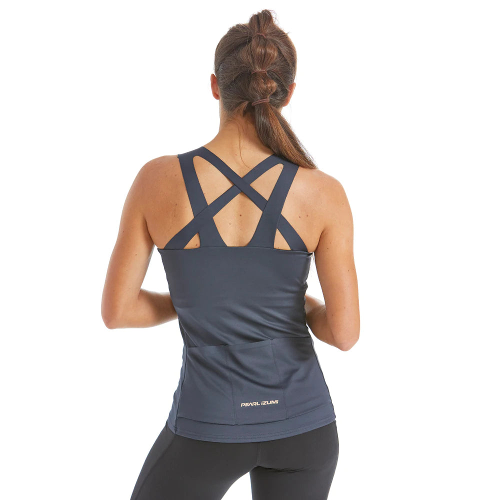 The Women' Symphony Tank is designed with cycling in mind, but breaks from the standard jersey look so you stand out when you go out. With sleek, laser cut crossover straps and an internal shelf bra that provides moderate support, we've found the sweet spot between style and performance. Cycling-focused features include three rear pockets and a higher neckline compared to standard fitness tanks, for better coverage while riding.