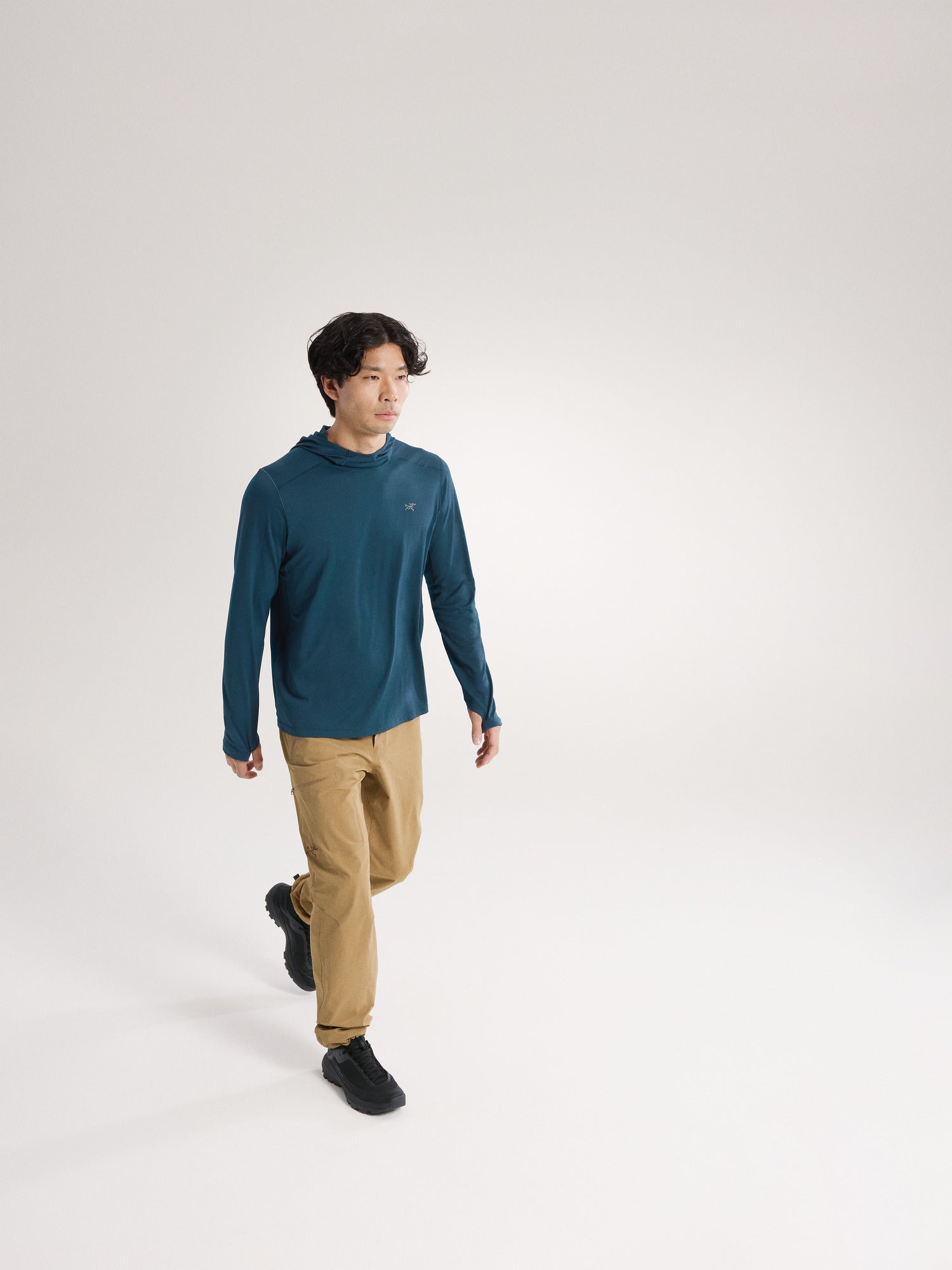 The summer sun can be fierce. The Cormac Hoody is specifically created to help shield climbers, runners, hikers – anyone seeking mountain adventure – from the sun and keep them comfortable on the move. One of our lightest fabrics, the 100% recycled Phasic™ LT fabric wicks moisture, breathes, provides UPF 40+ sun protection, and is treated for odour resistance. A brimmed helmet-compatible hood protects the face, thumb loops hold sleeves in place, and low-profile seams ride comfortably under a pack.