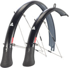 | Features | Glossy inner layer finish resists dirt and grime build-up Extended fender lengths and duckbill mud flaps* keep feet dry, and eliminate rear spray 3M triangle rear logos enhance visibility Support stays spaced for maximum stiffness and frame compatibility Stays can be bent to accommodate unique mounting configurations Front fender equipped with safety stays to protect against objects becoming lodged in wheel Compatible with most Disc-Brake-equipped bikes Compatible with most Thru-Axle-equipped bikes Compatible with a wide range of suspension forks Wide range of tire compatibility Profile designed for optimal tire clearance Sold pre-assembled for quick mounting Lifetime warranty |