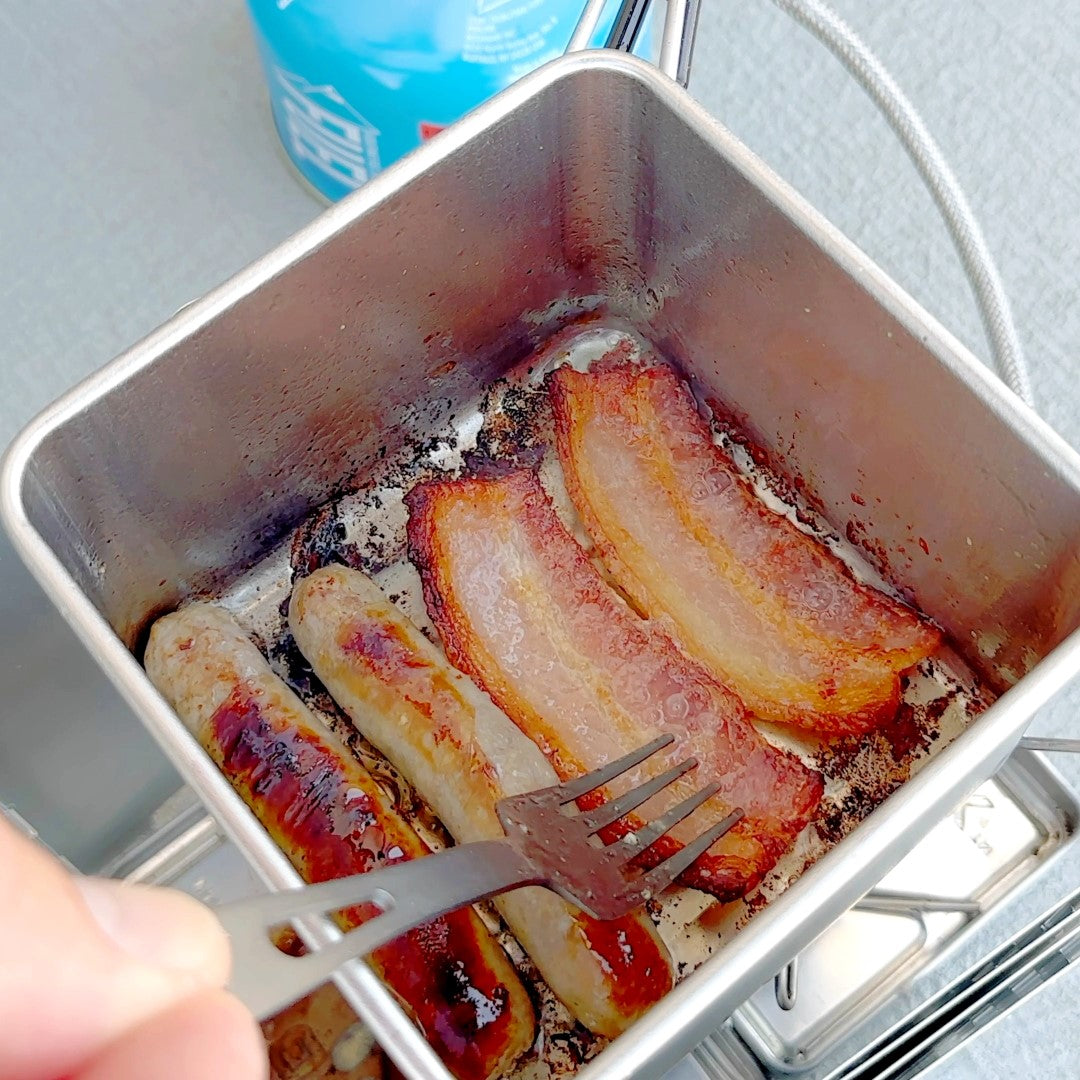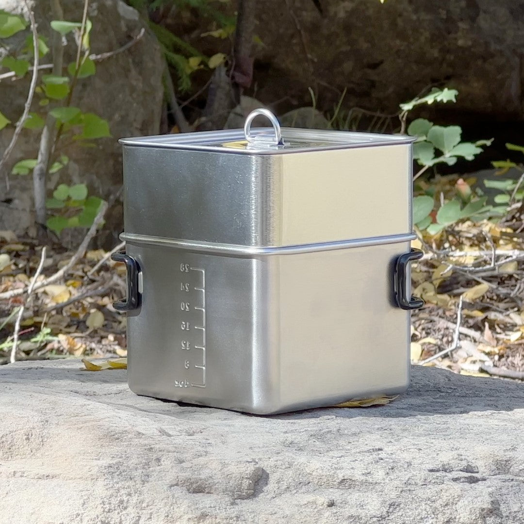 Crafted from BPA free food grade 304 / 18-8 Stainless Steel which is durable yet still lightweight. Built to withstand the rigors of the great outdoors without slowing you down. Rounded corners make the BOX-POT easy to clean. Sturdy folding handles and a heat resistant grip coating provide comfort in your hand yet fold away for storage, indexing securely into their rattle free closed positions.