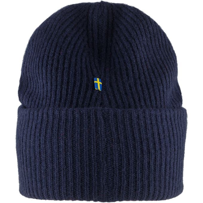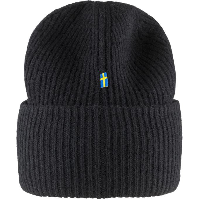 Rib-knitted hat in soft, warm lambswool. Robust, two-layer knitting with wide folded edge. Embroidered Fjällräven emblem on the front.