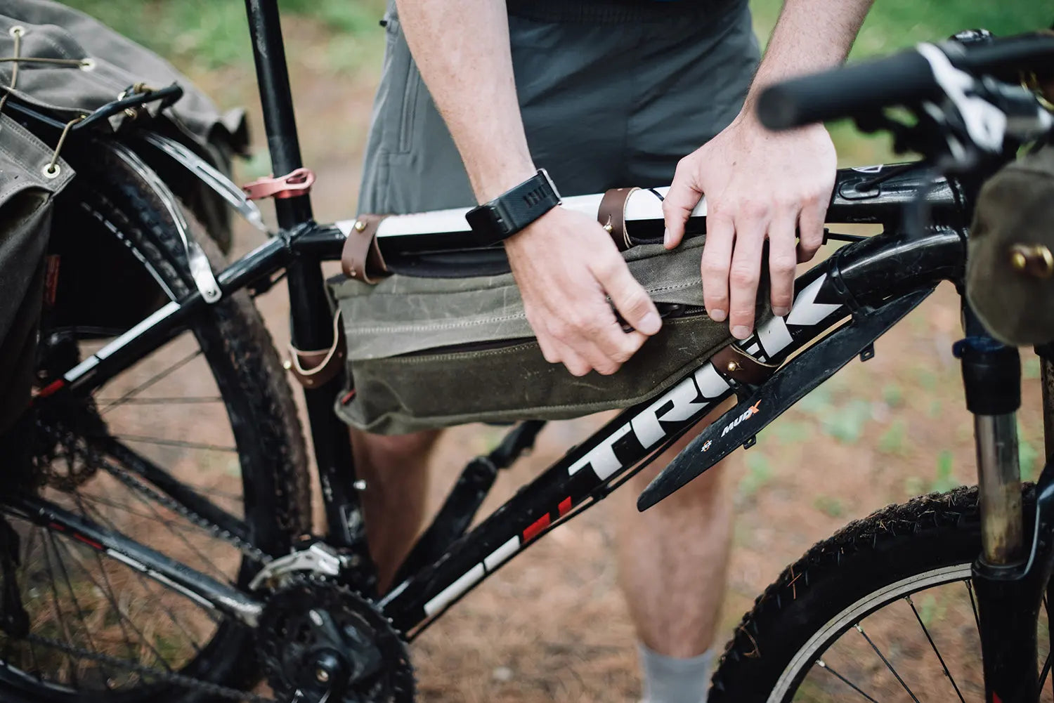 Riding around the four mile Trezona Trail loop in Ely, Minnesota isn’t all that tough or strenuous, especially when on a bike with your extra layer tucked into the Trezona Trail Top Tube Bag from Frost River.
