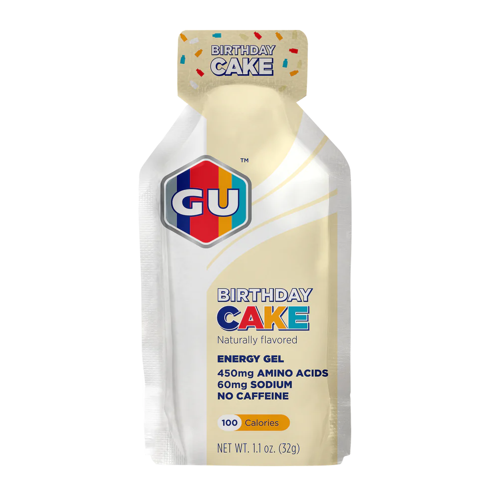 Birthday Cake gives everyone permission to indulge and celebrate out on the trails. This flavor is delicious, indulgent, and takes us back to our childhood days of sneaking a swoop of cake batter without getting caught by mom or dad. Created to celebrate GU's 25th birthday, here’s to 25 more!