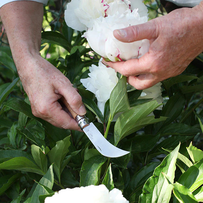 All garden knifes include Opinel's patented safety ring that keeps the blade locked open while in use and locked shut while in transport.