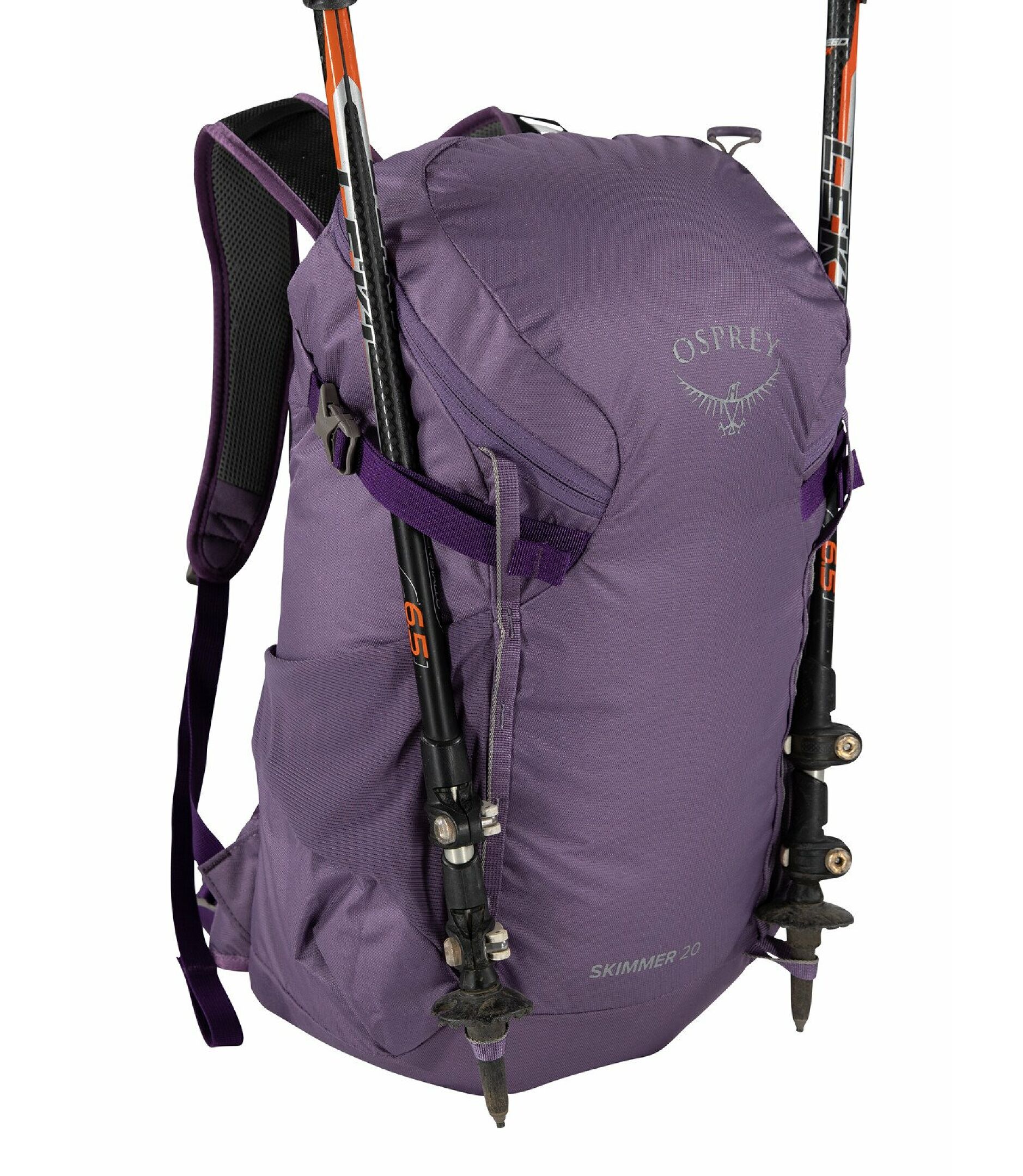 • Dual upper side compression straps with trekking pole capture
