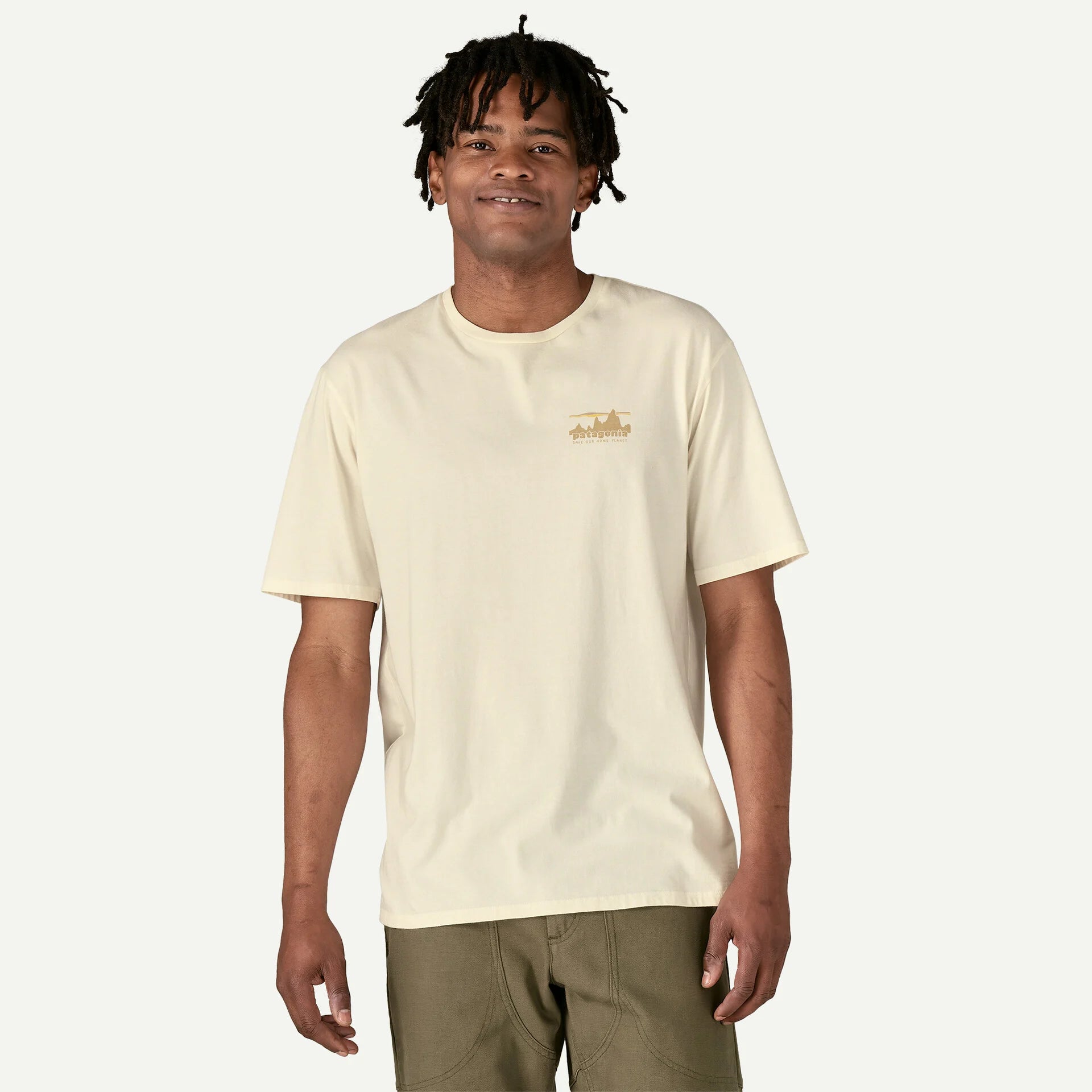 Fast-forward to now, and we're in business to save our home planet. Conserving resources is key, so this everyday-weight T-shirt is made with organic cotton, and it uses 84% less water and creates 16% less CO2 than a conventional cotton T-shirt. Made in a Fair Trade Certified™ factory.