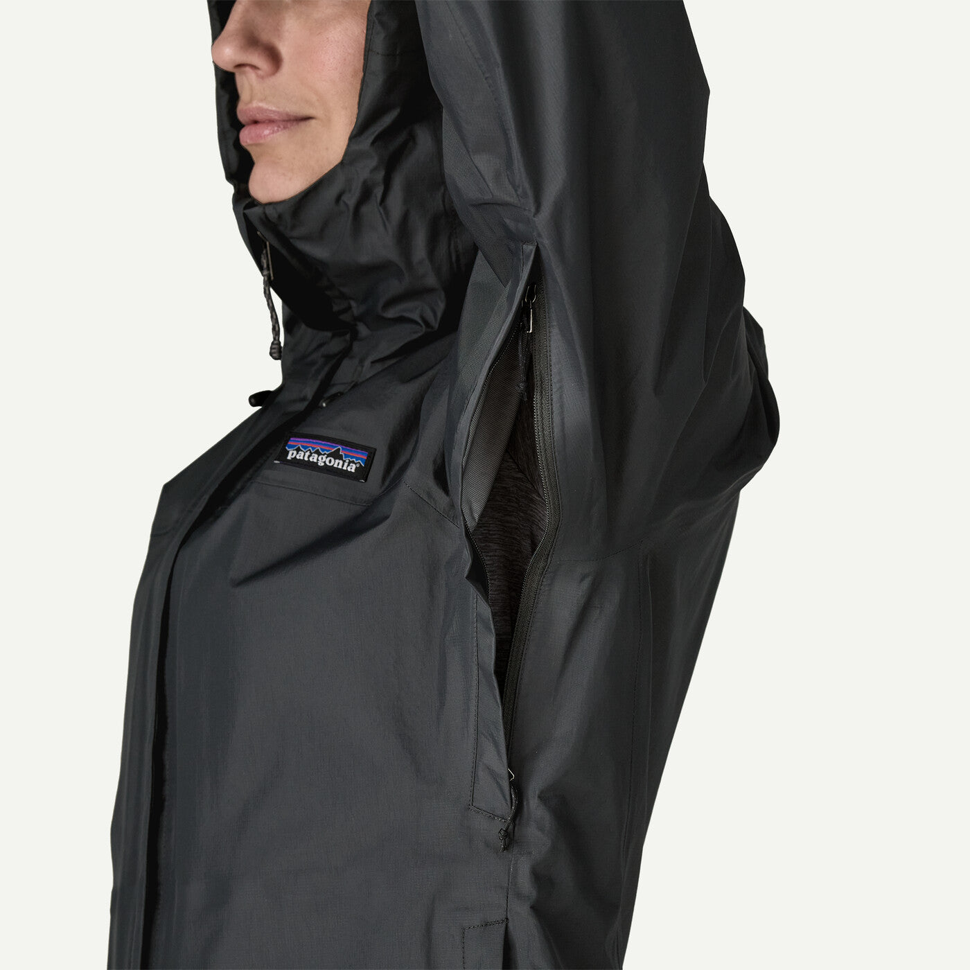 Front welted pockets with zipper closures and climbing-rope zipper pulls keep valuables safe and hands warm