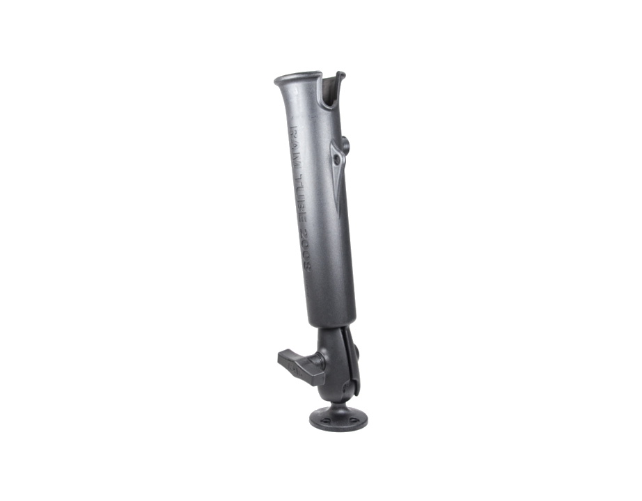 Offering the patented RAM rubber ball, socket and ratcheting feature, you can rotate the rod holder 360 degrees, while tilting the cradle forward and back for the optimum angle. The RAM-TUBE 2008 tube holder integrates the patented rubber ball and socket design with a self draining and quick to access tube for the butt of most any fishing rod. The tube is made of extremely durable composite. Ideally suited for anything from Kayaks to Tournament boats, this compact and simple design is ready for your next day on the water.