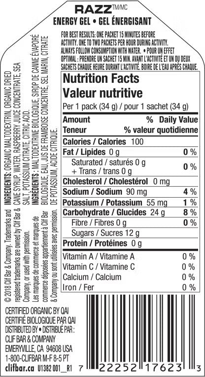 CLIF SHOT Energy Gel supplies 22 – 24 g carbohydrates for energy during training and racing.