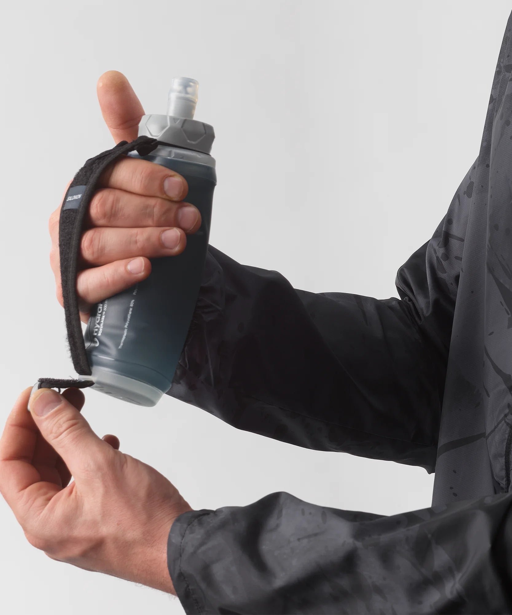 The adjustable soft strap wraps effortlessly around your hand, so you can focus your energy on running. The flask shrinks as you drink to limit water bounce.