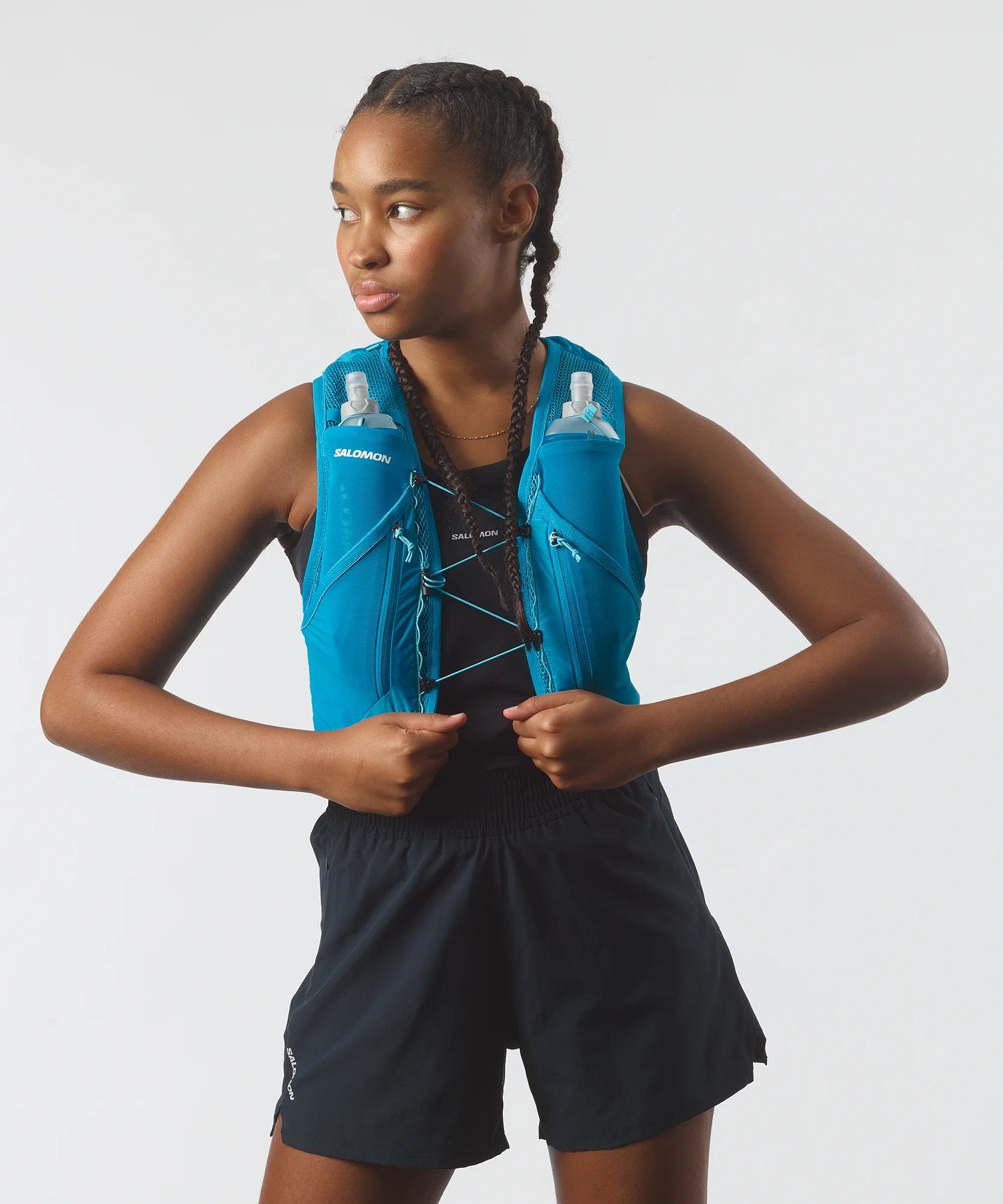 Two chest pockets provide fast access to your flasks on the go. 2 x 500ml soft flasks included. Also compatible with a 1.5-liter bladder.